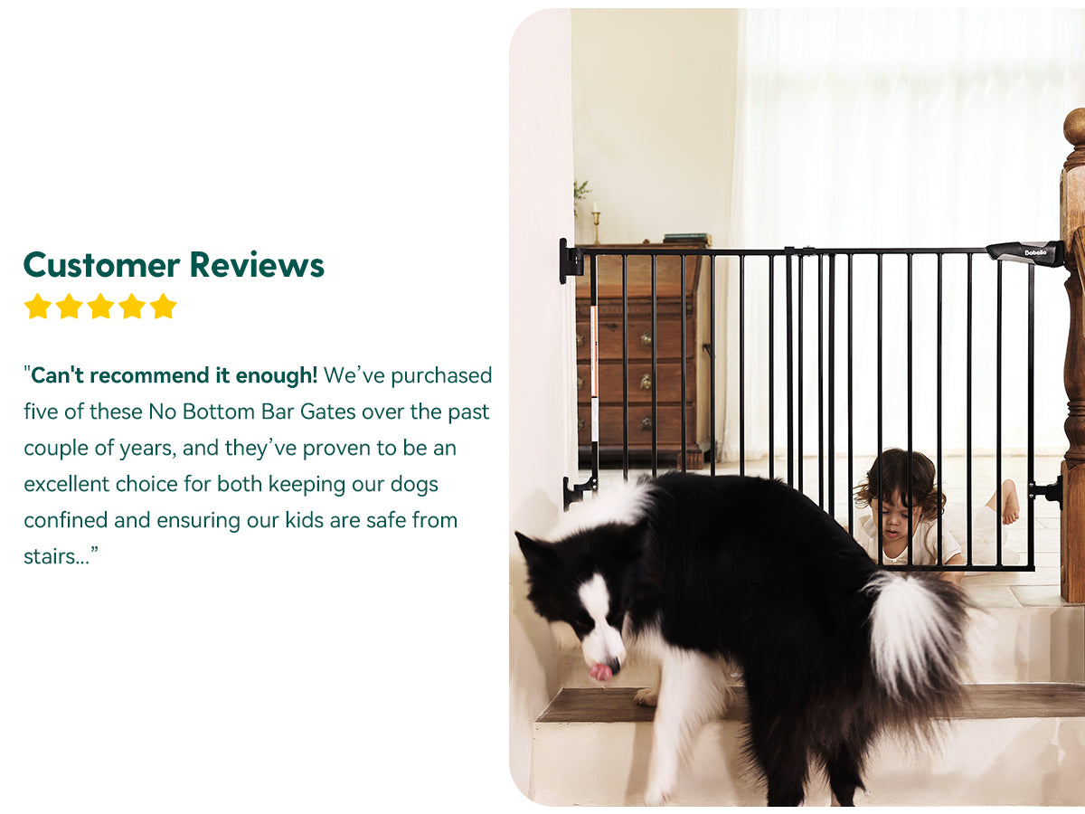 Growing families and pet owners know that one gate is often not enough. The Babelio Safety Gate Bundle lets you secure multiple areas of your home at once—whether it’s blocking stairways, closing off kitchens, or creating safe play zones in bedrooms and hallways. Perfect for families with toddlers, households with more than one pet, or anyone needing whole-home protection.