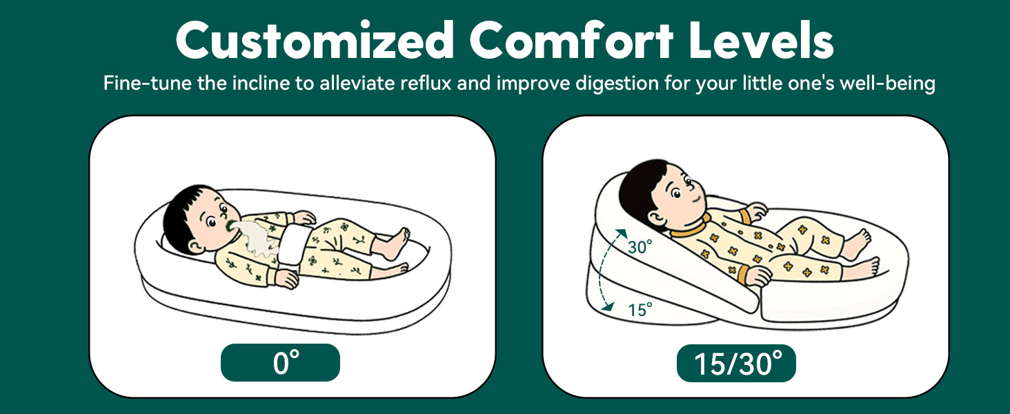 Ergonomic Anti-Reflux Angle – Slight incline helps minimize spit-up after feeding, ideal for babies prone to reflux or colic.