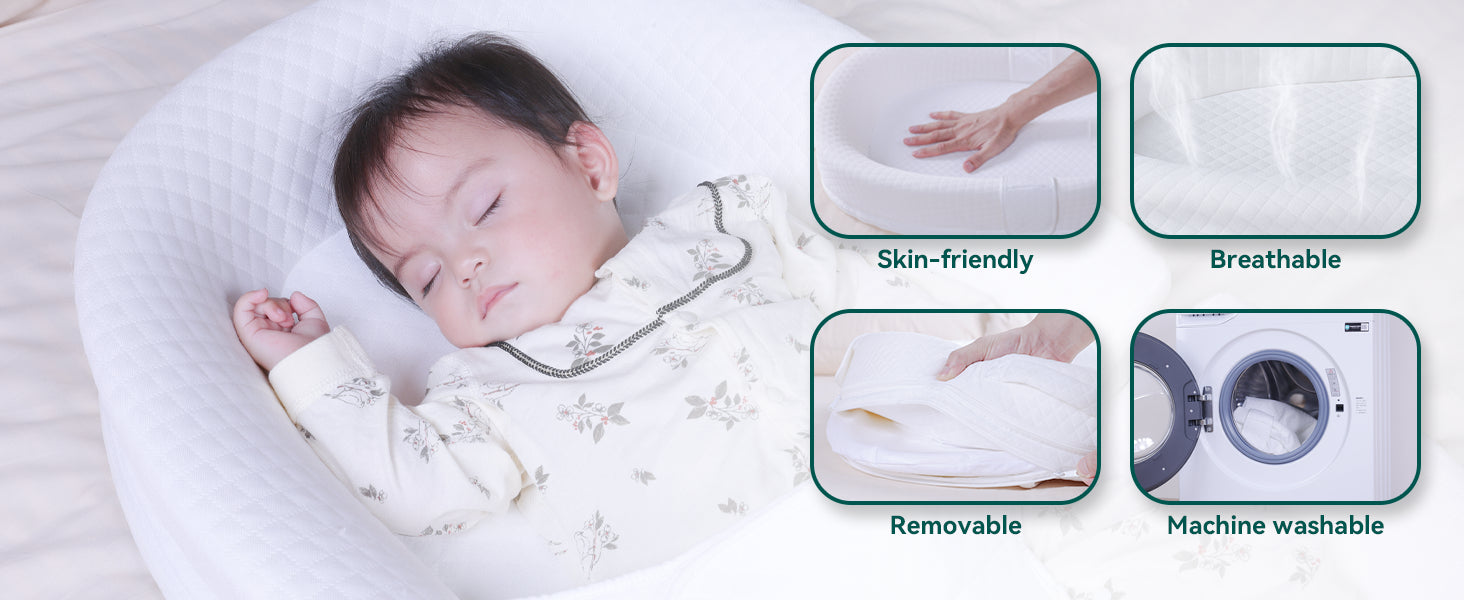 Womb-Inspired Design – Surrounds your baby like a snug hug to promote better sleep and reduce restlessness.