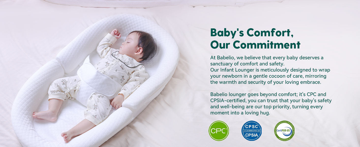 Designed with your baby’s comfort and development in mind, the Babelio Adjustable Baby Lounger offers a cozy, womb-like environment with added anti-reflux support — ideal for newborns and infants up to 24 months.