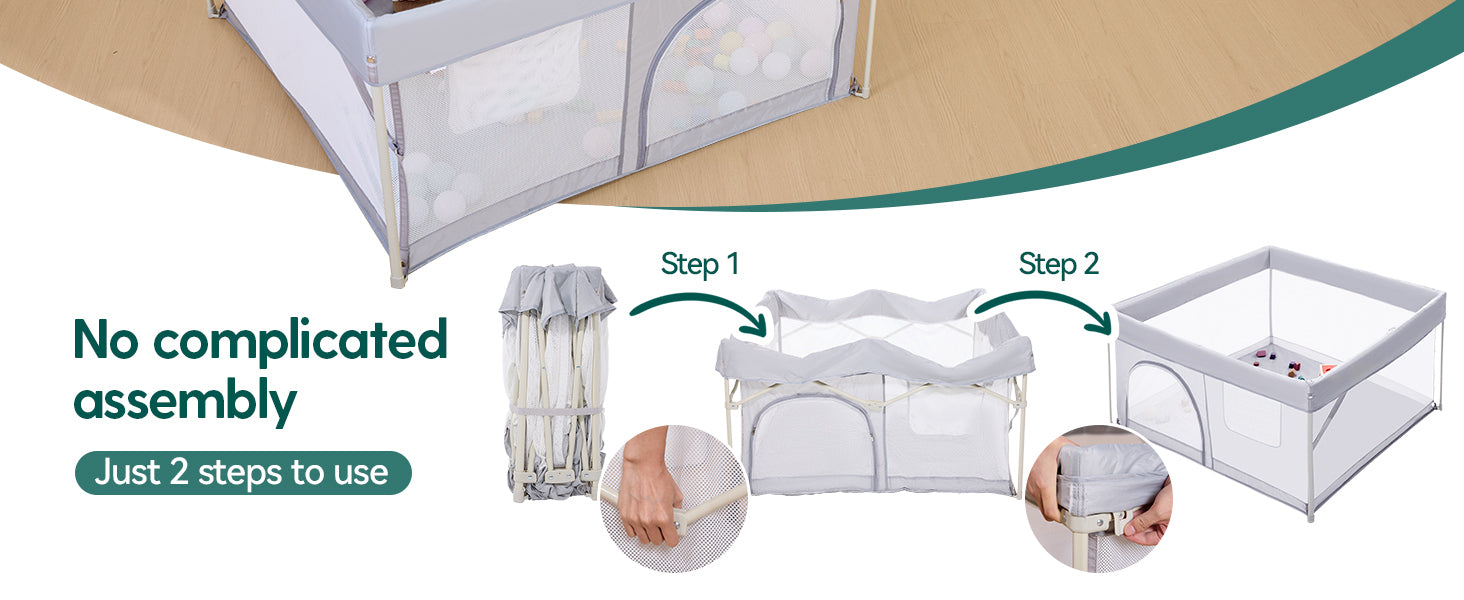- Quick & Simple Setup: Say goodbye to complex assembly with Babelio baby playpen. Get started in just two easy steps, making playtime setup a breeze for families on-the-go