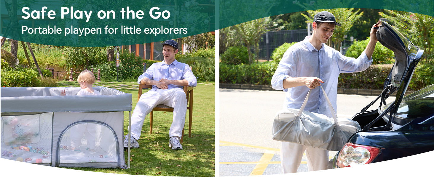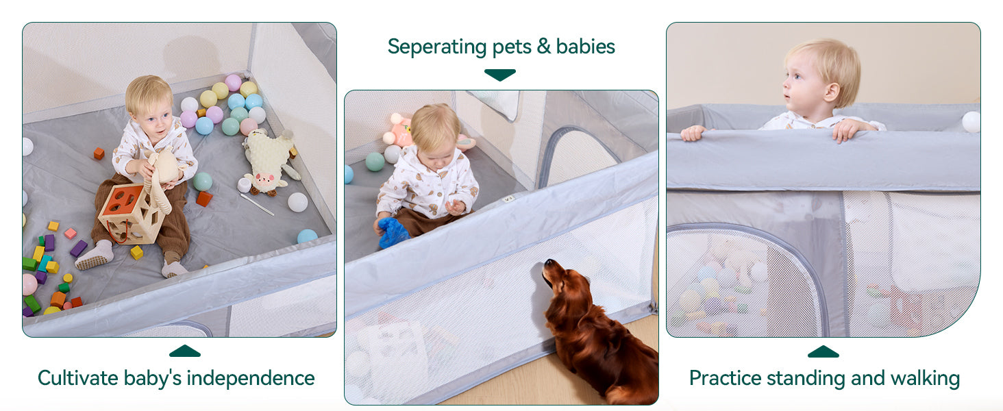 - Portable Design: Babelio play pen comes with a convenient storage bag, making it a must-have for your travels. Effortlessly switch between indoor and outdoor spaces without the burden of heavy lifting or complex setup
