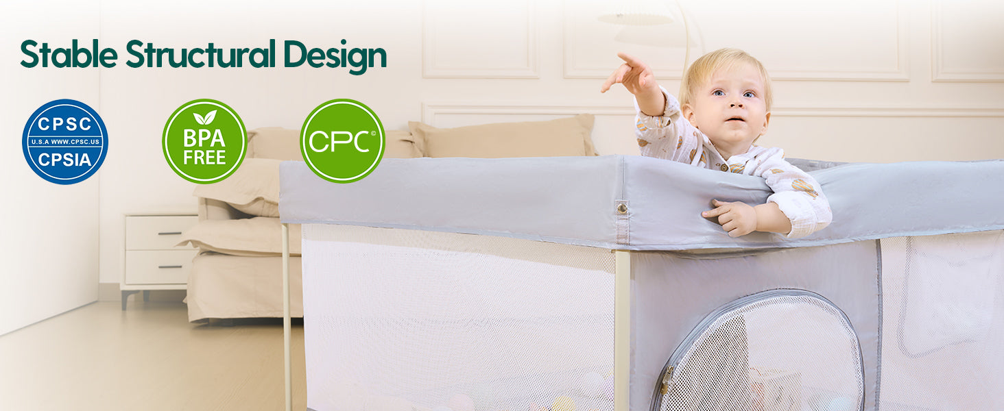 - Safe and Built to Last: The ASTM-certified playpen is stable even when your baby is fully leaning against it. Made of steel and oxfoandrd cloth, our foldable play yard for babies is built to withstand the tests of time and the energetic play of children
