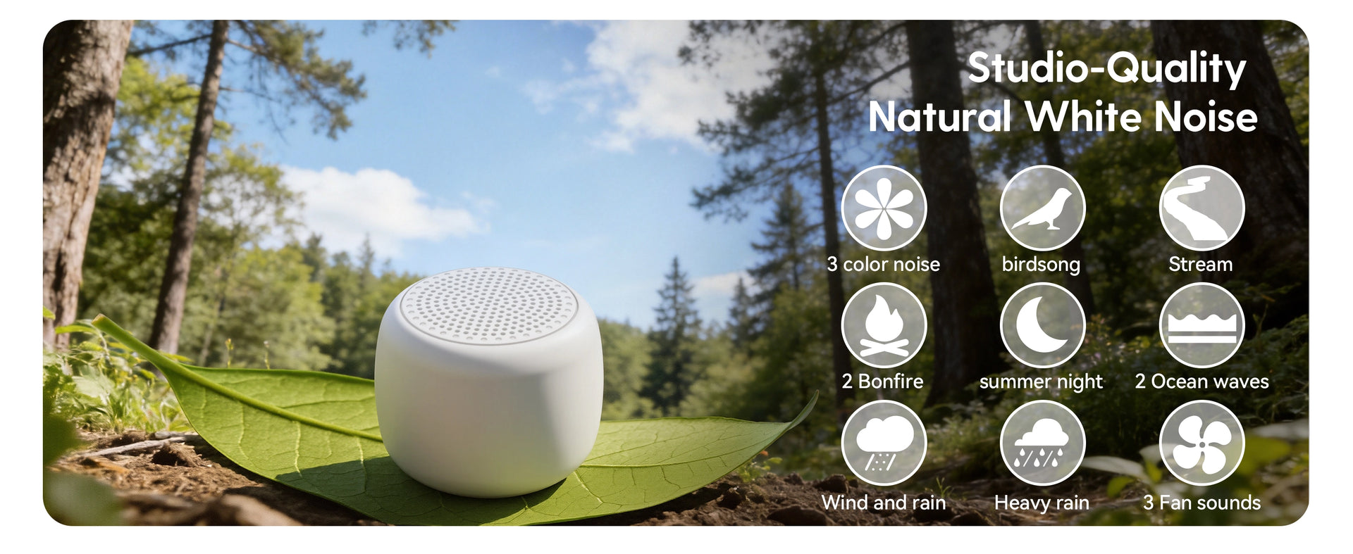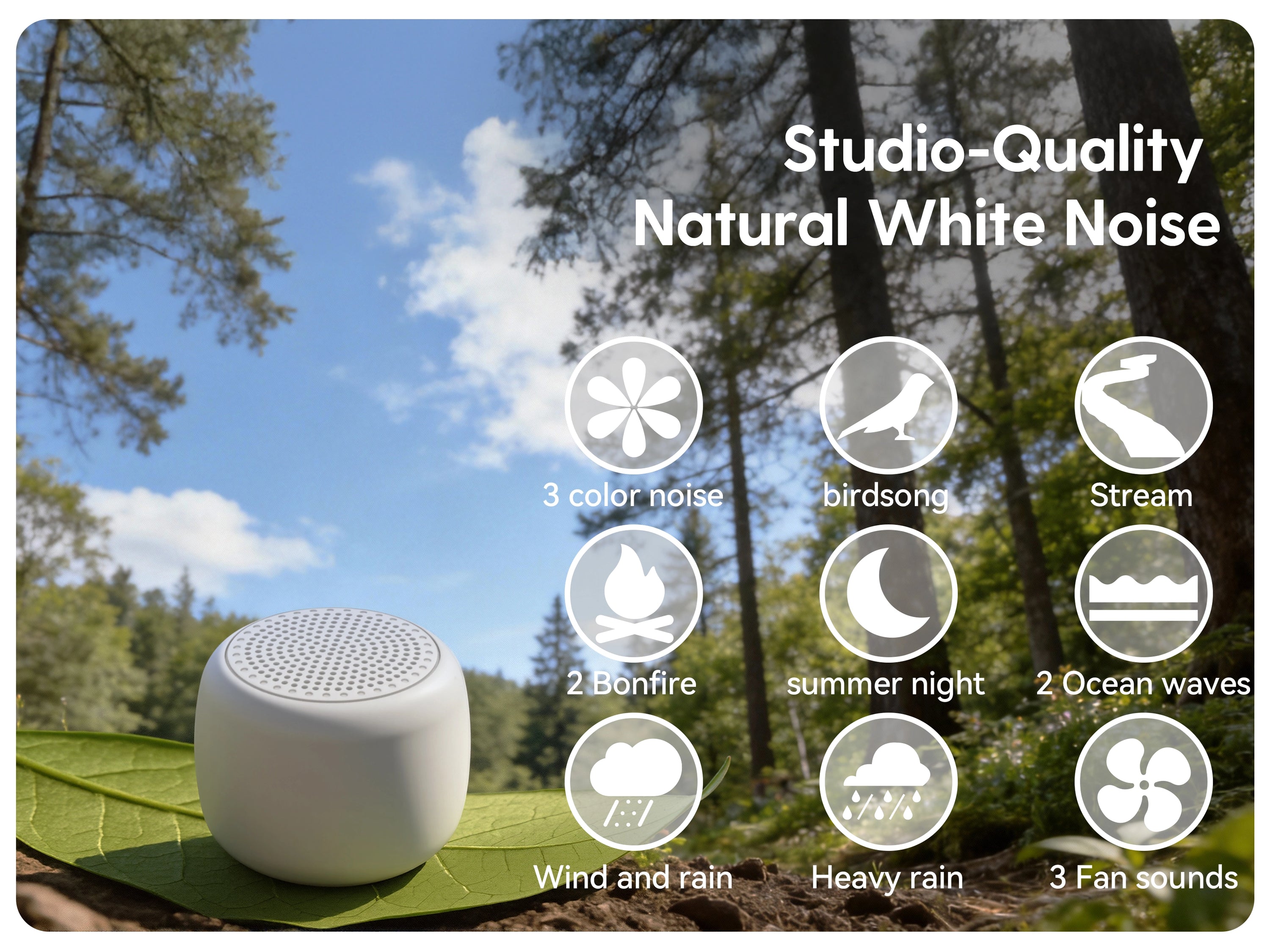 Compact & Portable — Measuring just 1.89" x 1.89" x 1.57", this mini sound machine fits in any bag. Great for nursery, office, travel, or camping.