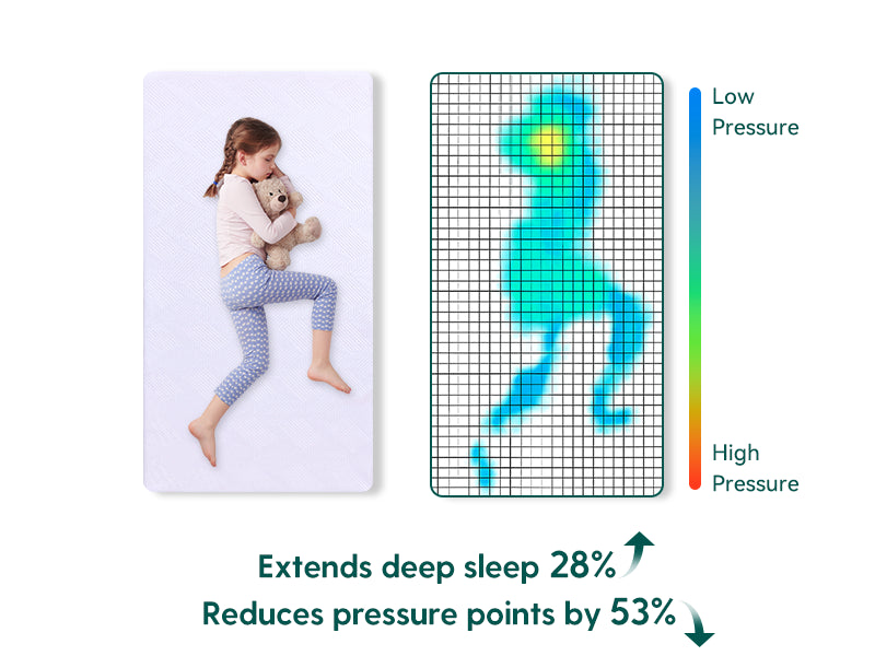 【3-Zone Support】Ergonomic zoning crib mattress delivers tailored support to different body areas, ensuring optimal weight distribution to maintain the spine’s natural curve, promote healthy spinal development, and enhance sleep comfort