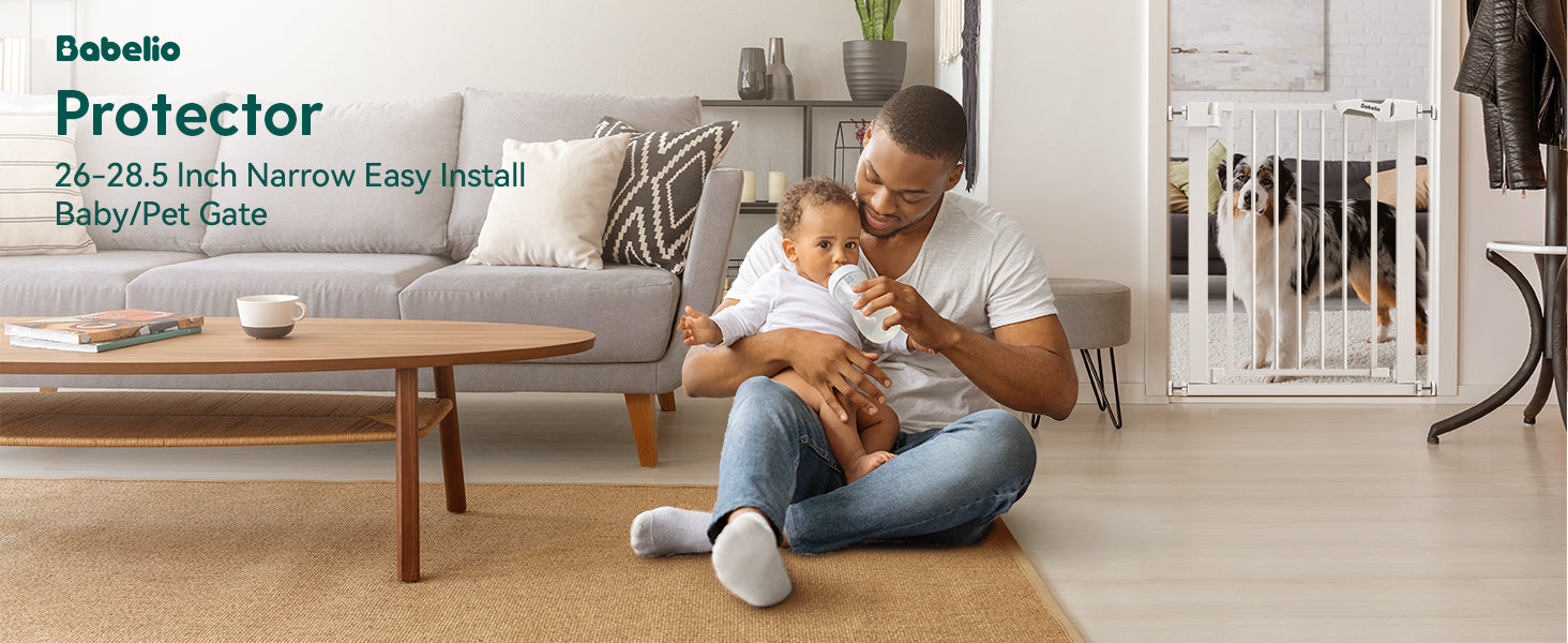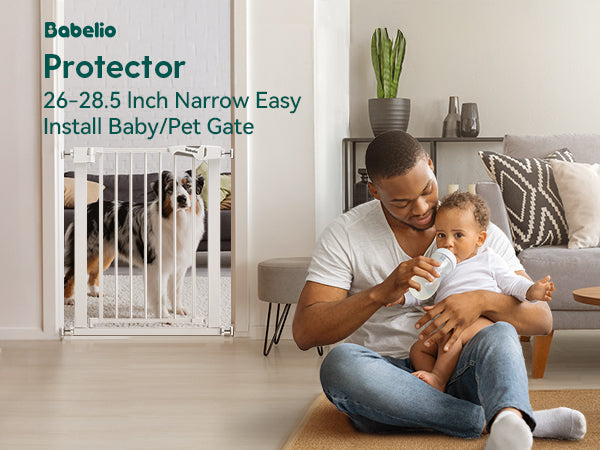 Babelio 26-28.5 Inch Narrow Easy Install Baby Gate is suitable for 6-24 months children and created a safe and happy environment for babies to explore the world.