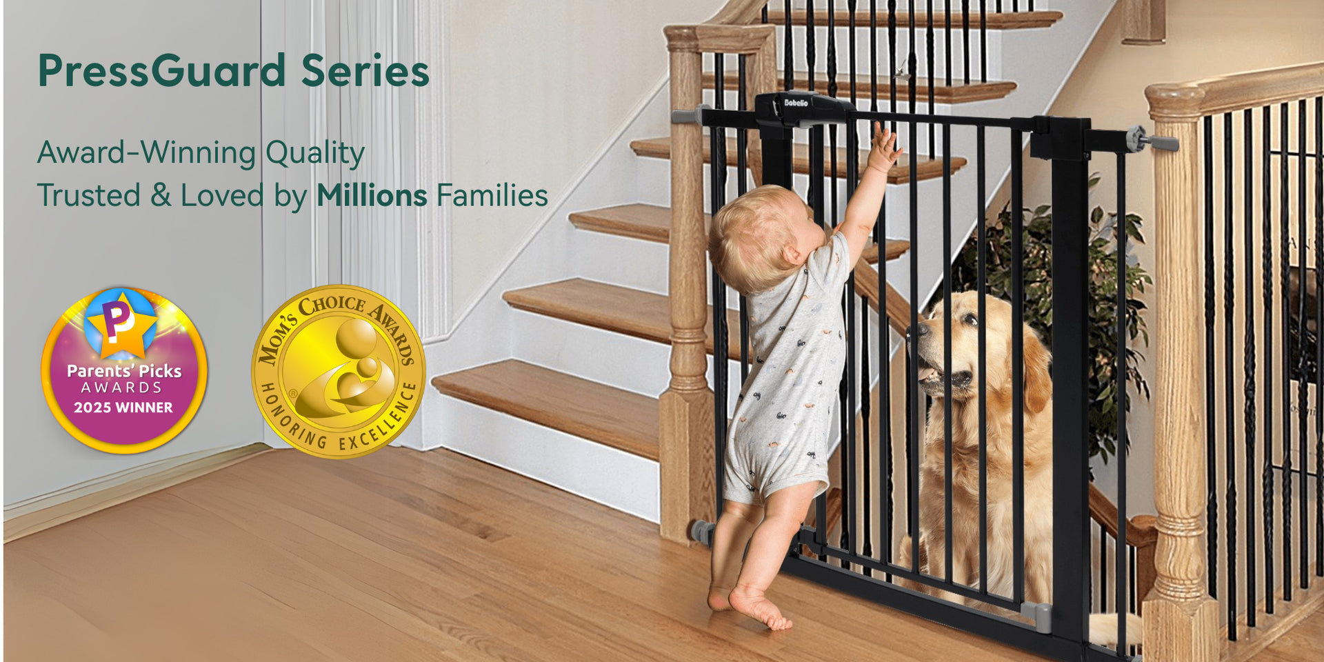 PressGuard P7 | Expandable Baby Gate for Stairs No Drill Pressure Mounted