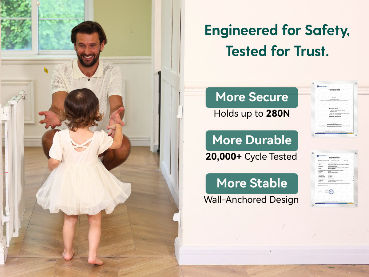 Auto-Close & Stay-Open — Convenience for busy households; gates close securely or stay open when needed.
