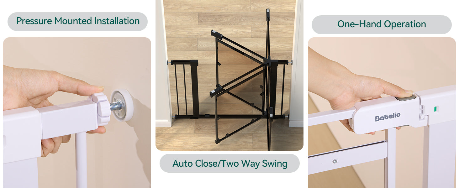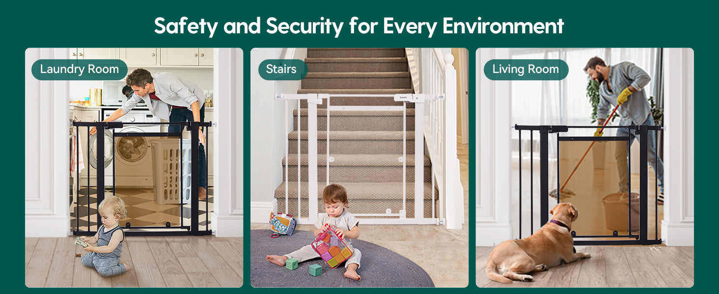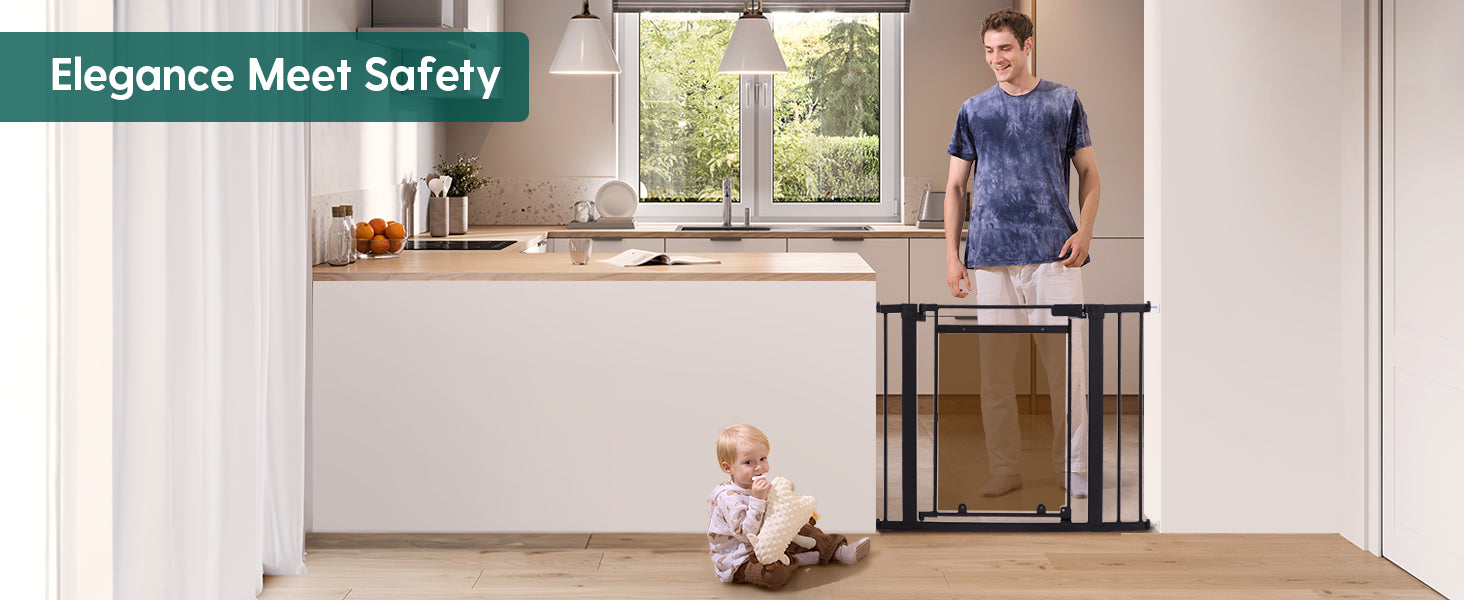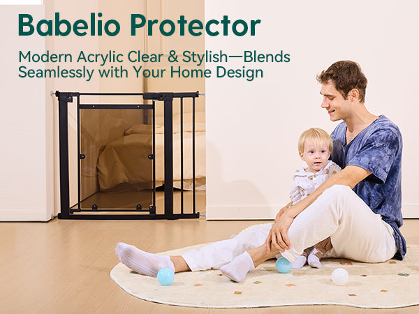 PressGuard P7 Clear | Auto Close Baby&Dog Gate for Stairs and Doorways