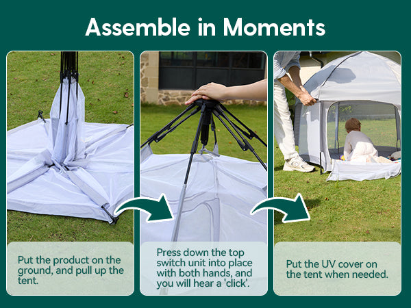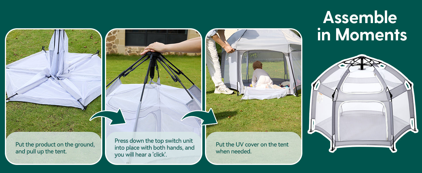 - Portable & Quick Install: Has a one-button installation and disassembly function, allowing you to quickly install and disassemble without effort, and can be folded for storage. This lightweight and compact portable design is very suitable for quickly building an independent play area for your baby when traveling.