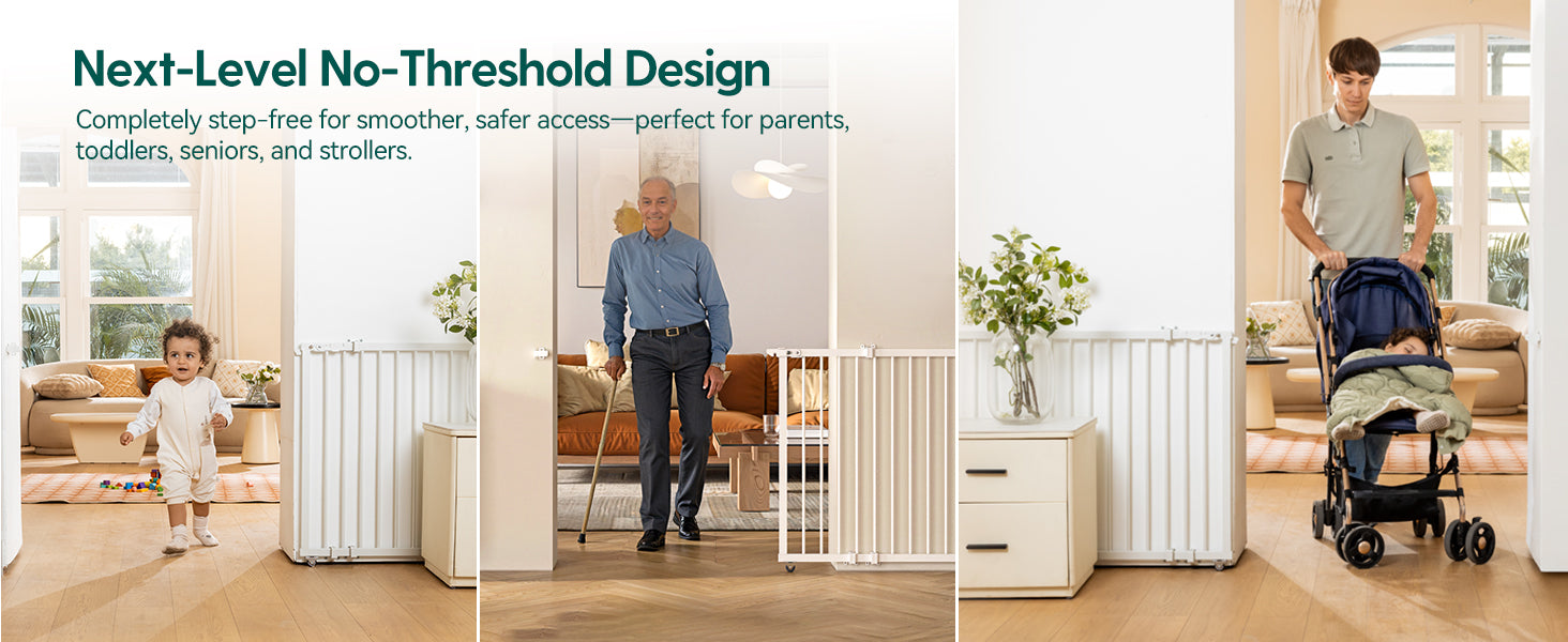 - Threshold-Free for Easy Access: The no-threshold design eliminates tripping hazards, providing a safer passage for children, pets, and the elderly. It fully opens for a wide, unobstructed pathway.