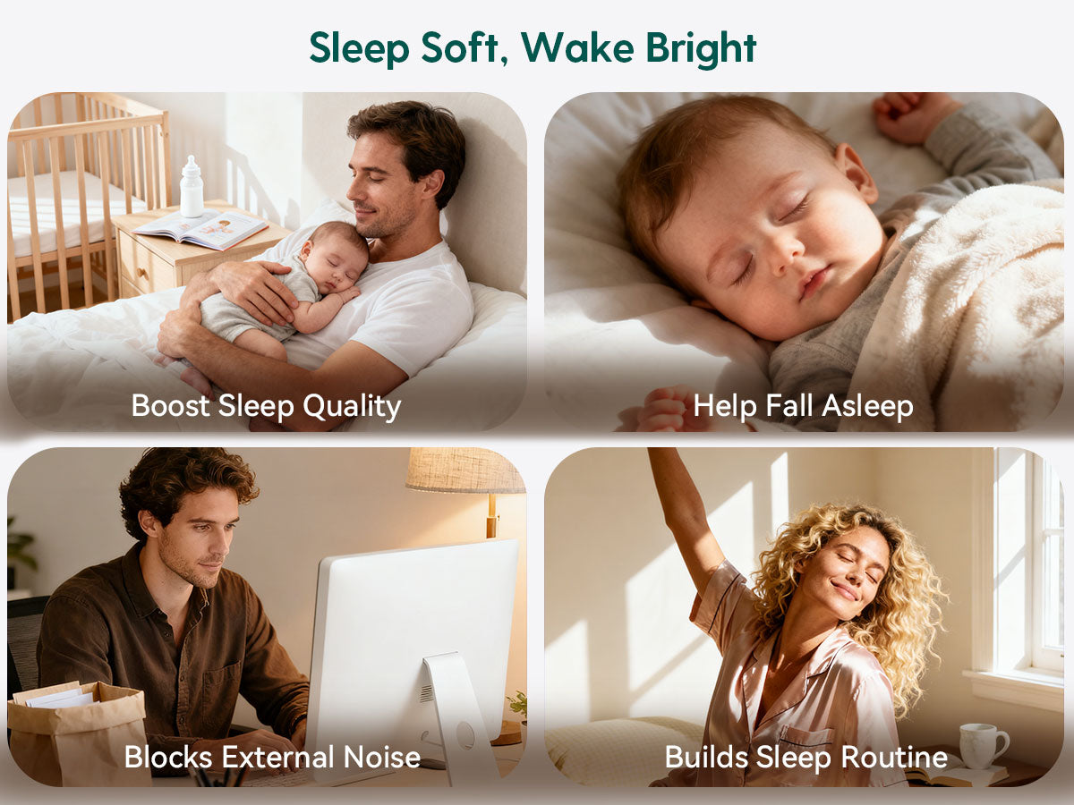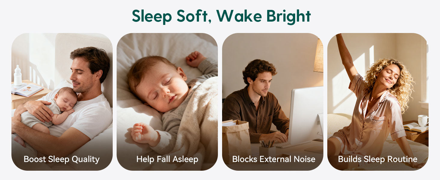 Use scenario: Help to fall asleep and improve the quality of sleep; shield noise, soothe emotions; soothe baby to sleep; help focus and improve efficiency, etc.