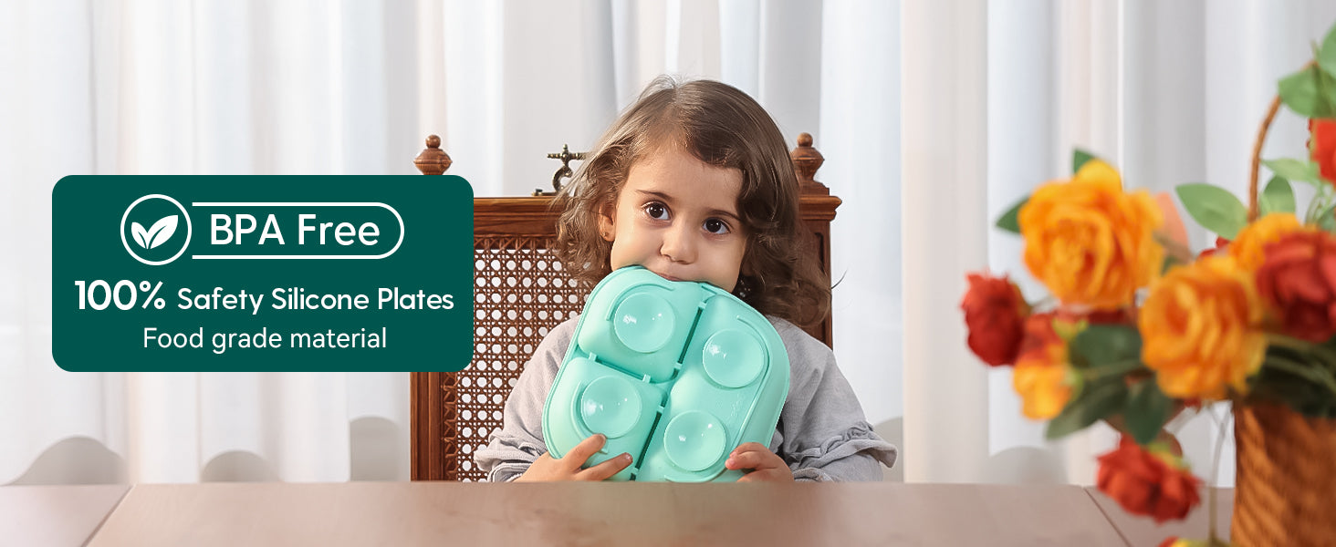 - 100% Safe for Baby: Our toddler suction plates are crafted from 100% food-grade silicone, free from BPA, PVC, fillers, or harmful materials. We're committed to providing safe, high-quality, and innovative baby feeding solutions.
