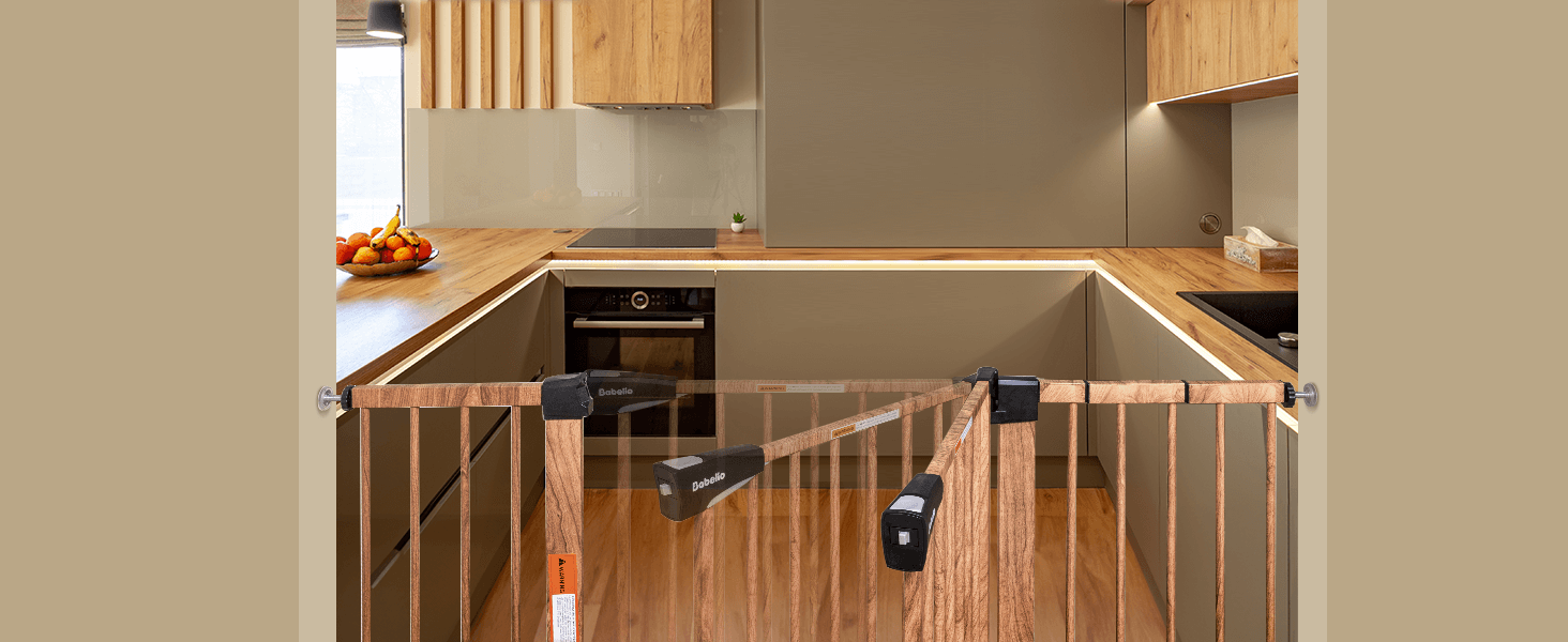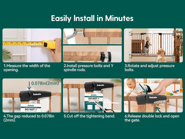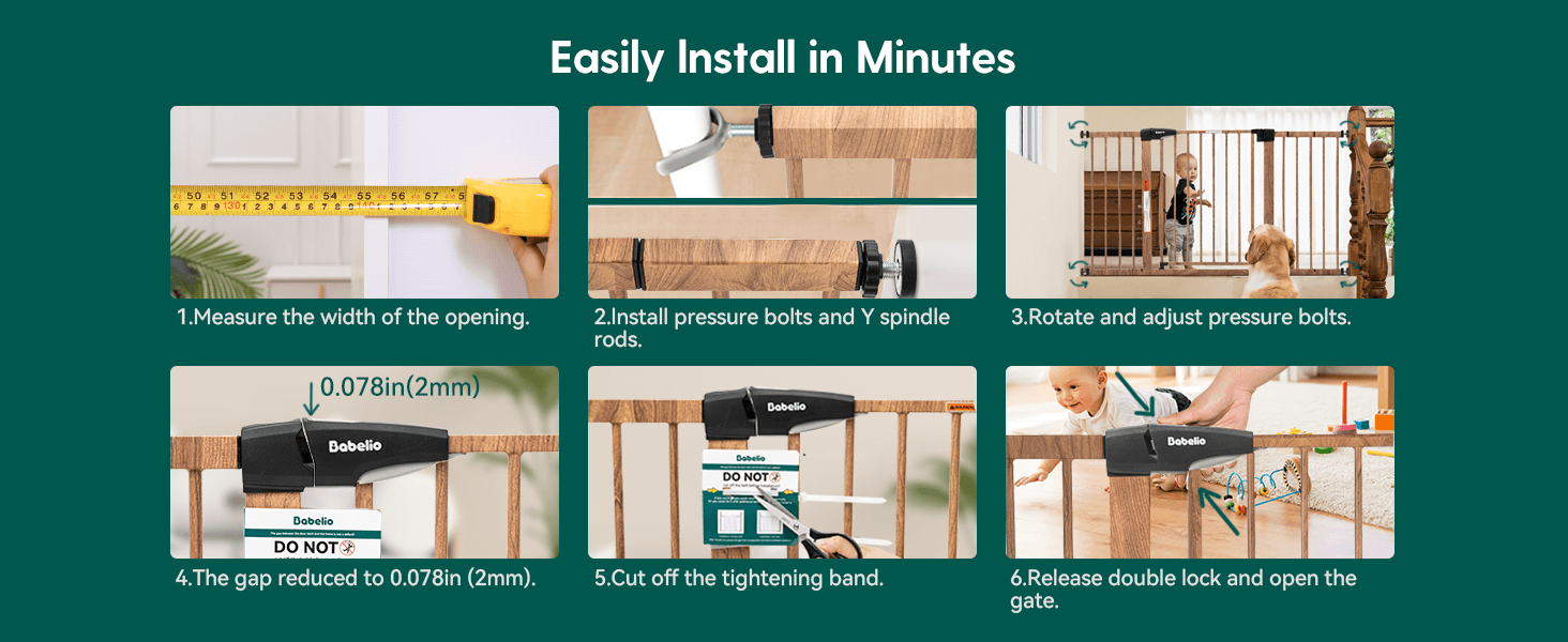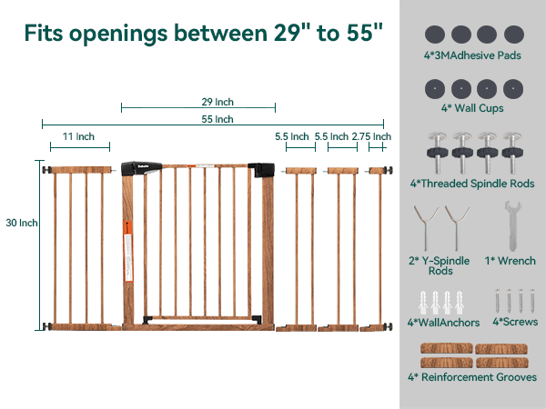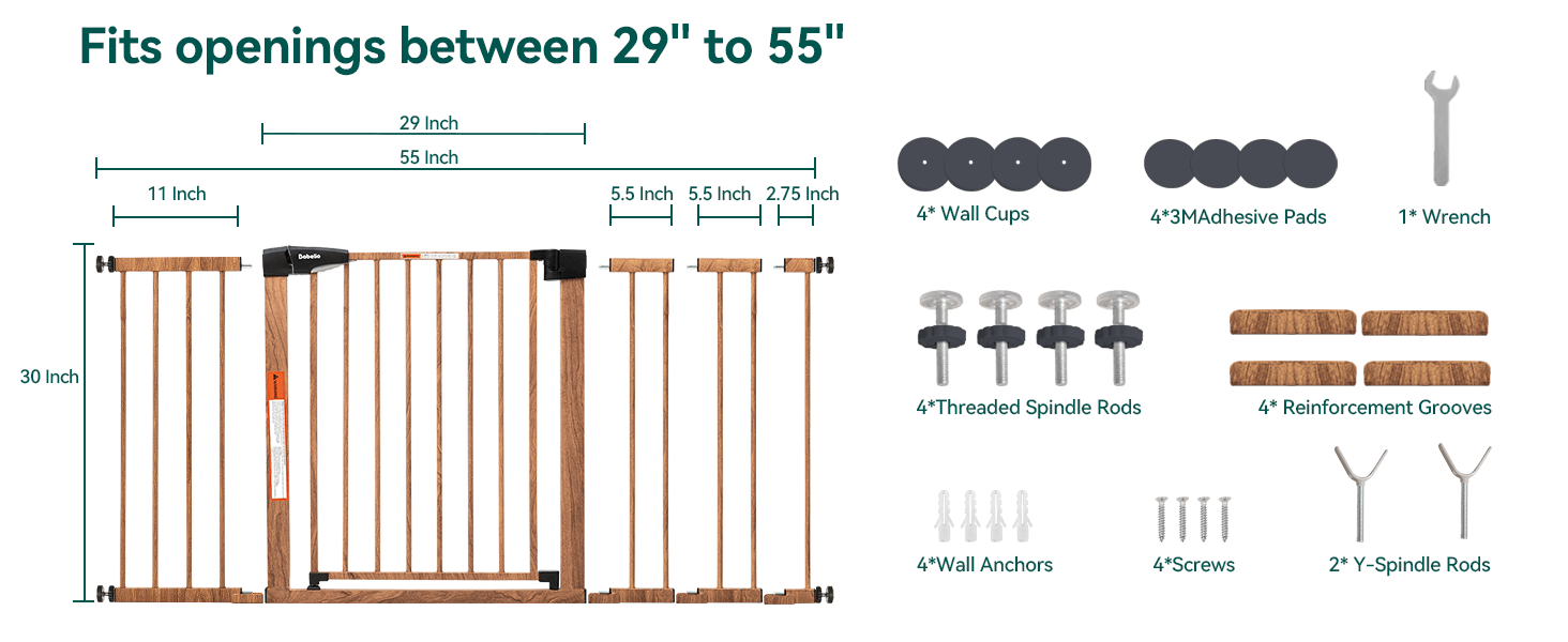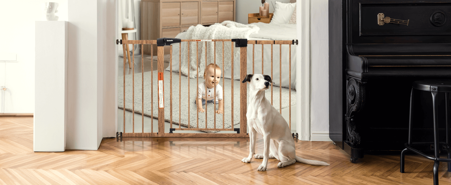 Babelio 29-55 Inch Extra Wide Metal Baby Gate with Wood Pattern is suitable for 6-24 months children and created a safe and happy environment for babies to explore the world.