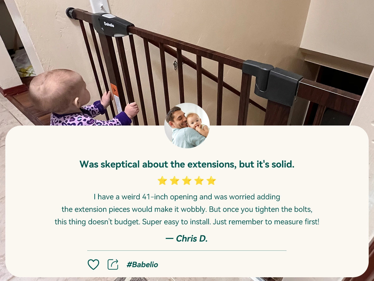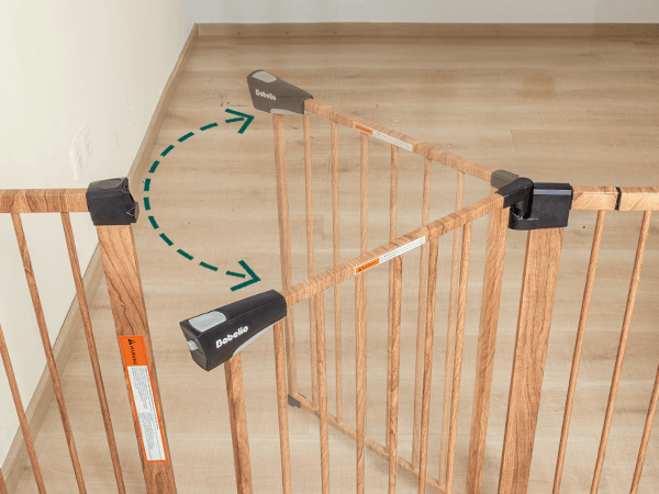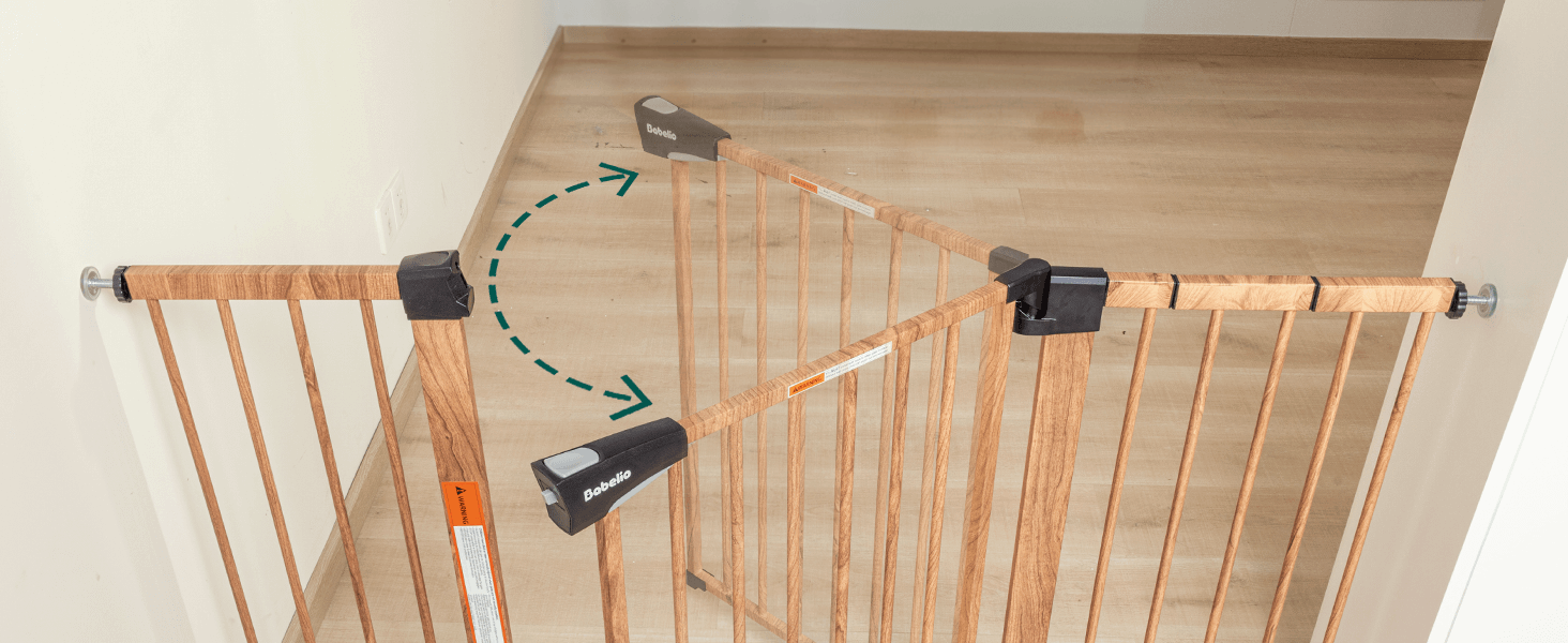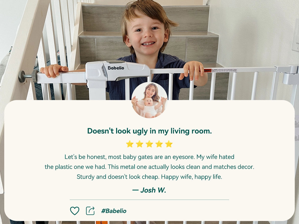 Crafted from durable steel with a wood grain finish to match your home decor. A safe and elegant baby gate solution for stairs, doorways, and more.