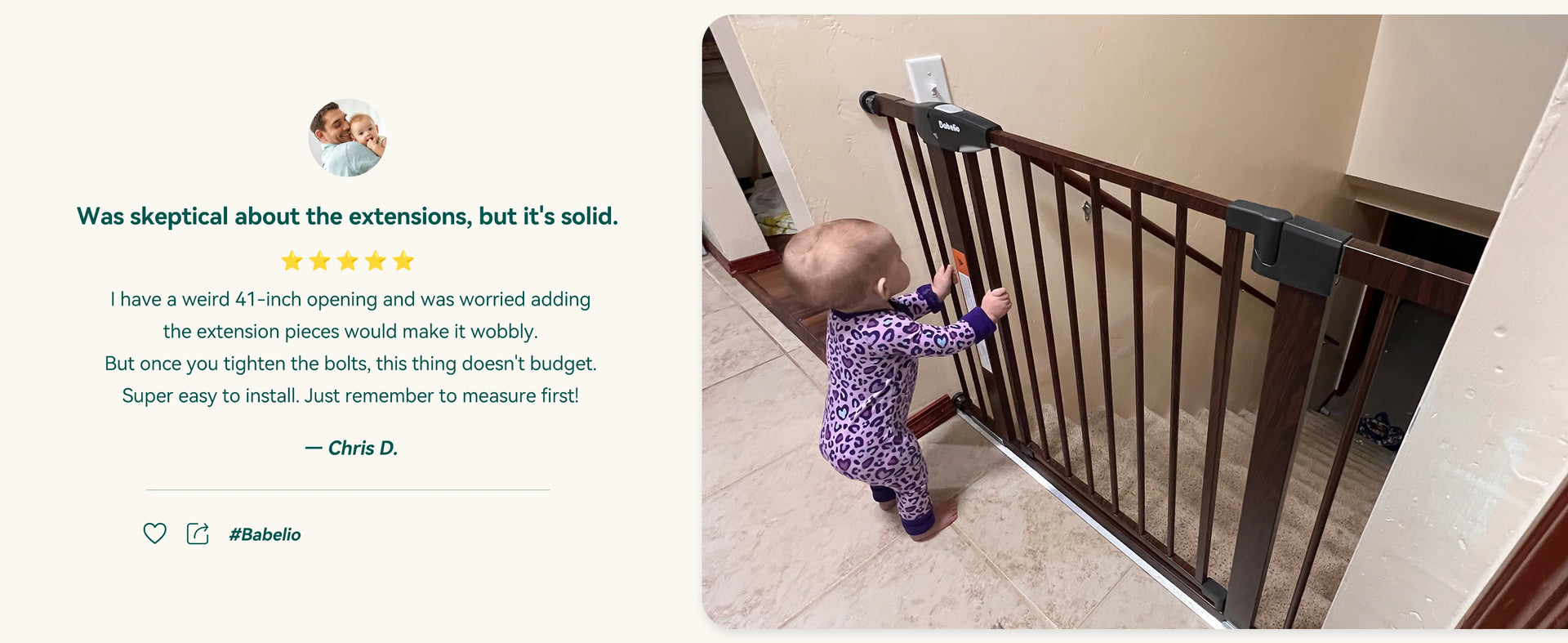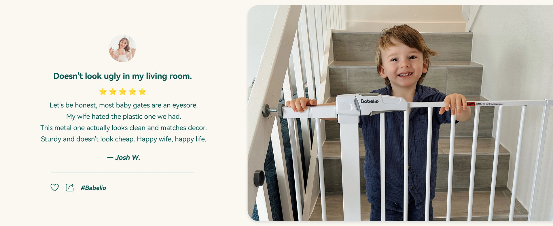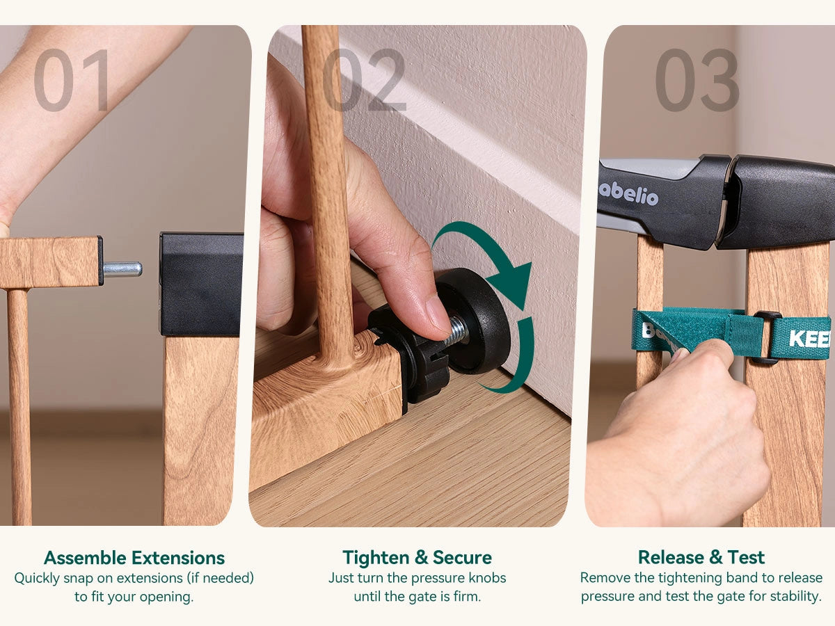 Crafted from durable steel with a wood grain finish to match your home decor. A safe and elegant baby gate solution for stairs, doorways, and more.