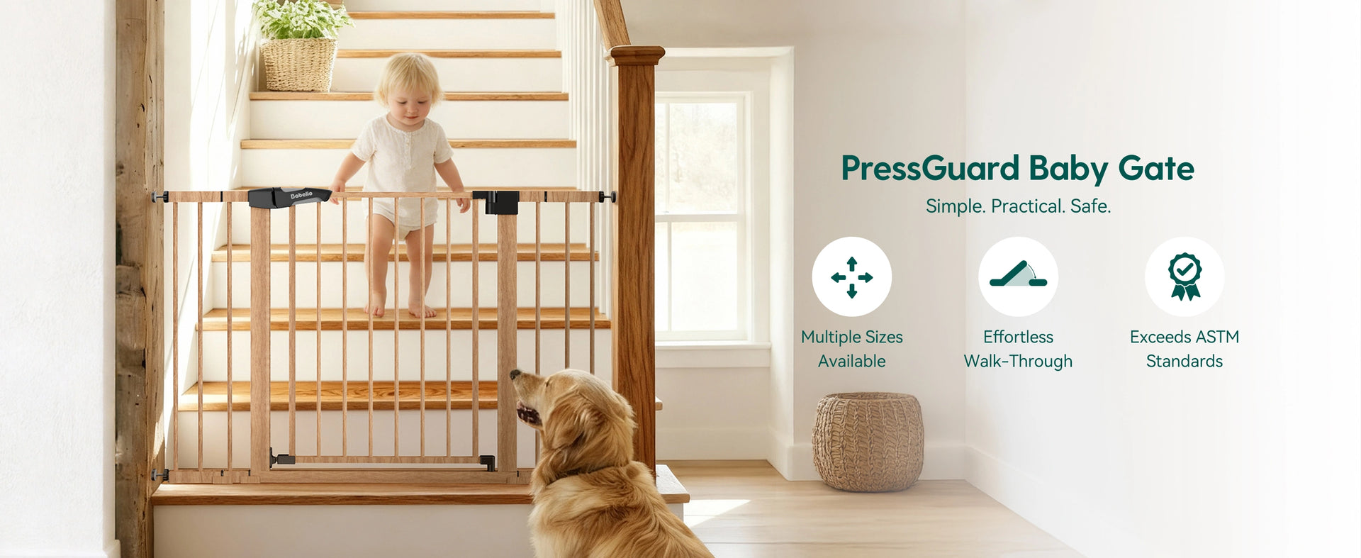PressGuard C5&P7 Wood Pattern | Pressure Mounted Baby Gate for Stairs