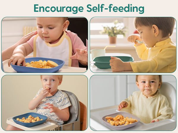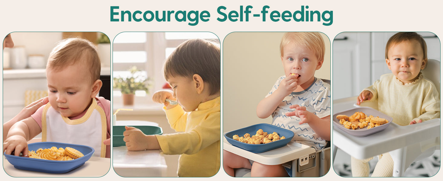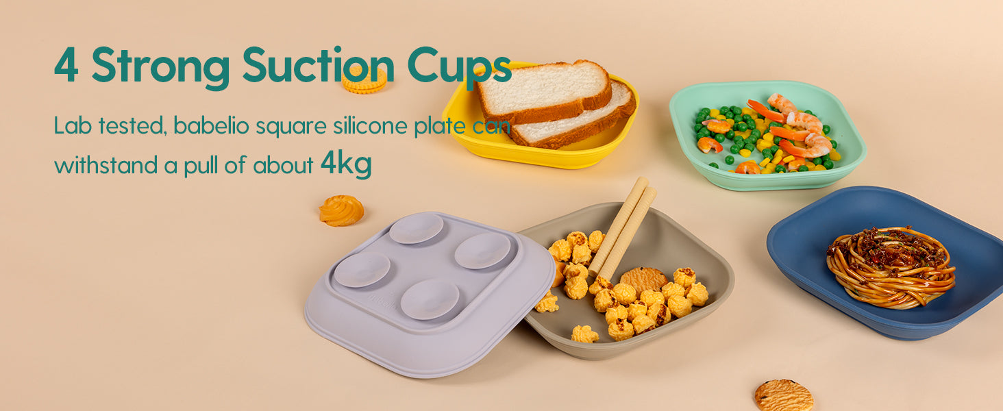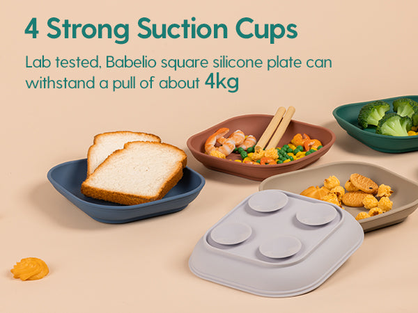 Food grade silicone plates with 4 suction cups can reduce mealtime mess and food spills, encouraging children to self-feed.