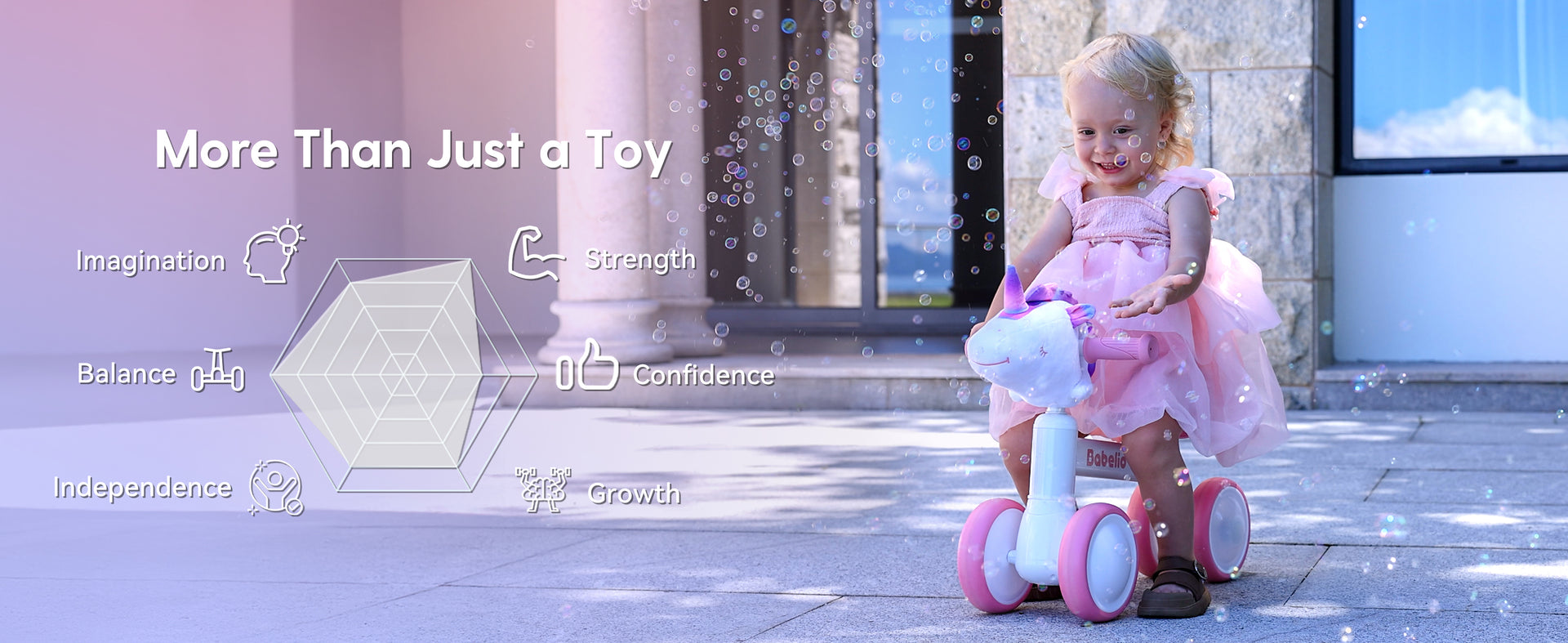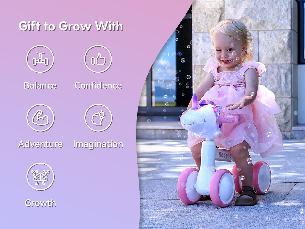Turn every ride into a magical adventure with the Babelio Unicorn Balance Bike. Designed for toddlers 10–36 months, this dreamy ride-on toy builds balance, confidence, and endless imagination—making it the perfect first birthday surprise.