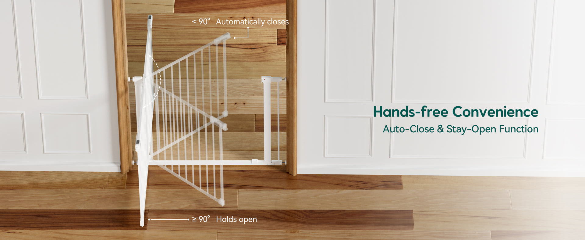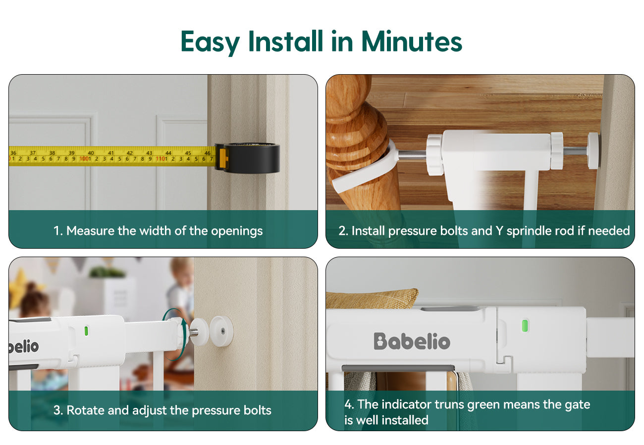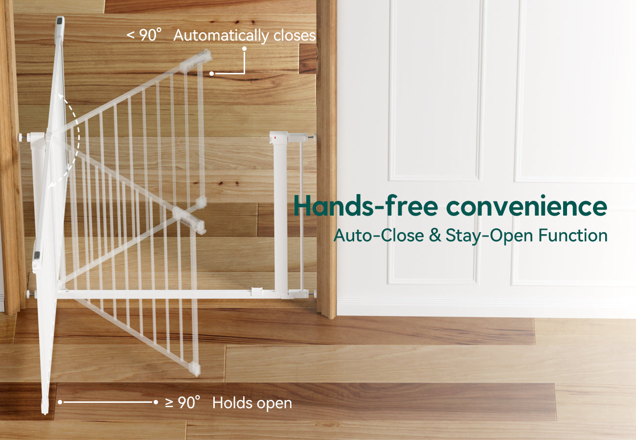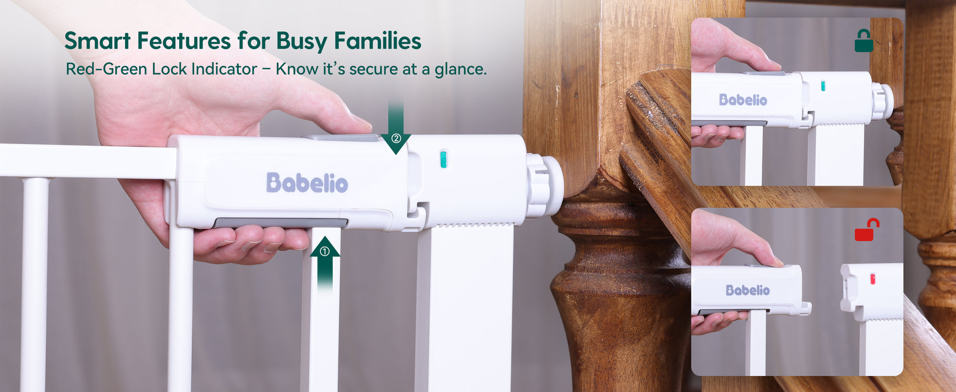 Keep your little one protected—without drilling a single hole. The Babelio Pressure-Mounted Baby Gate offers a tool-free solution for busy families who want fast setup and total peace of mind. With its extra-wide walk-through door, double-lock system, and color-coded lock indicator, this gate is designed for both convenience and security.