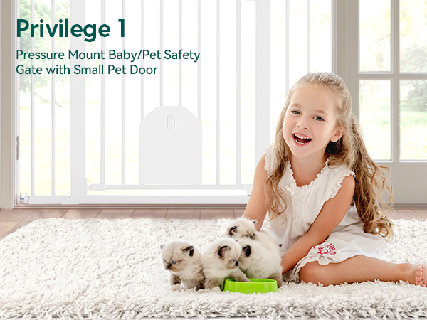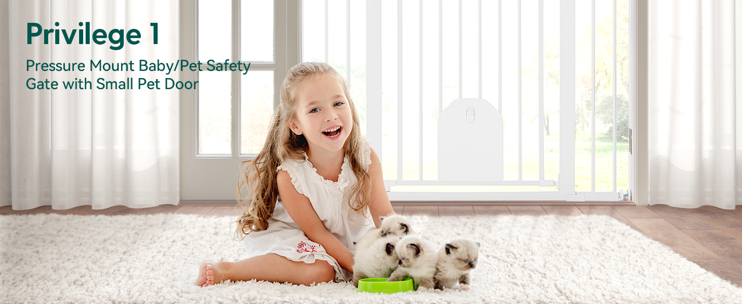 CatPrivilege A7 | Adjustable Safety Gate with Lockable Pet Door