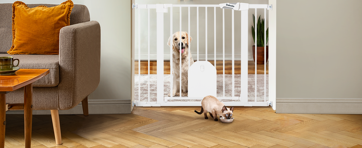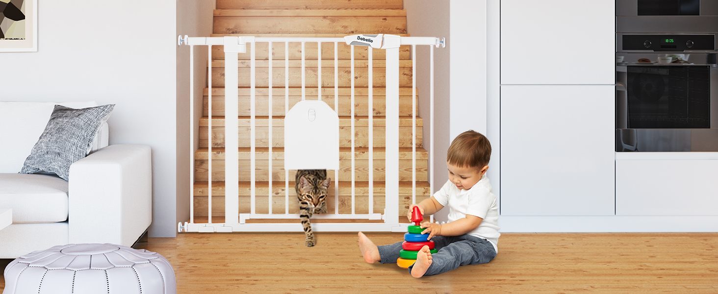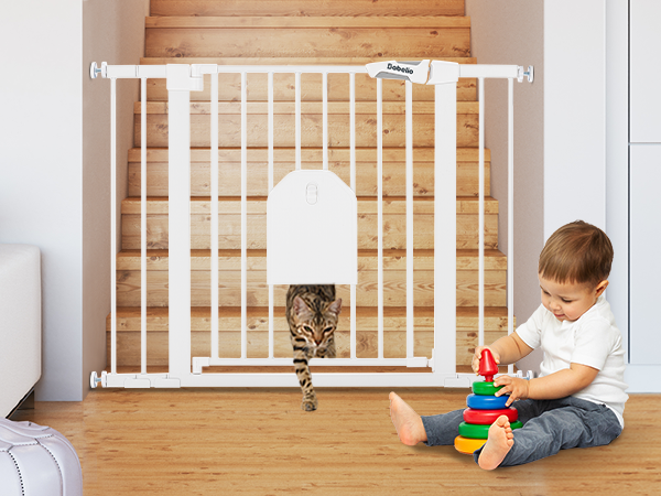 If you want a gate to keep your naughty baby safe, but not interfere with your cat's free movement. Choose Babelio baby gate with cat door.