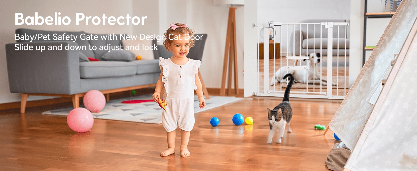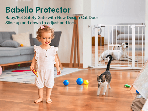 CatPrivilege F7 | Expandable Baby and Pet Gate with Adjustable Cat Door