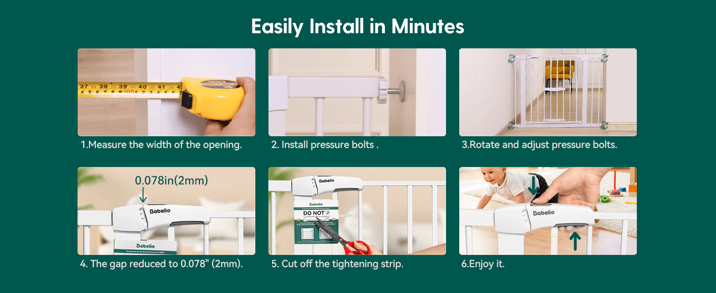 Covers 29–40 inches or 29–48 inches wide with included extensions. Available in 30-inch or 36-inch height, perfect for doorways, stairs, and hallways.