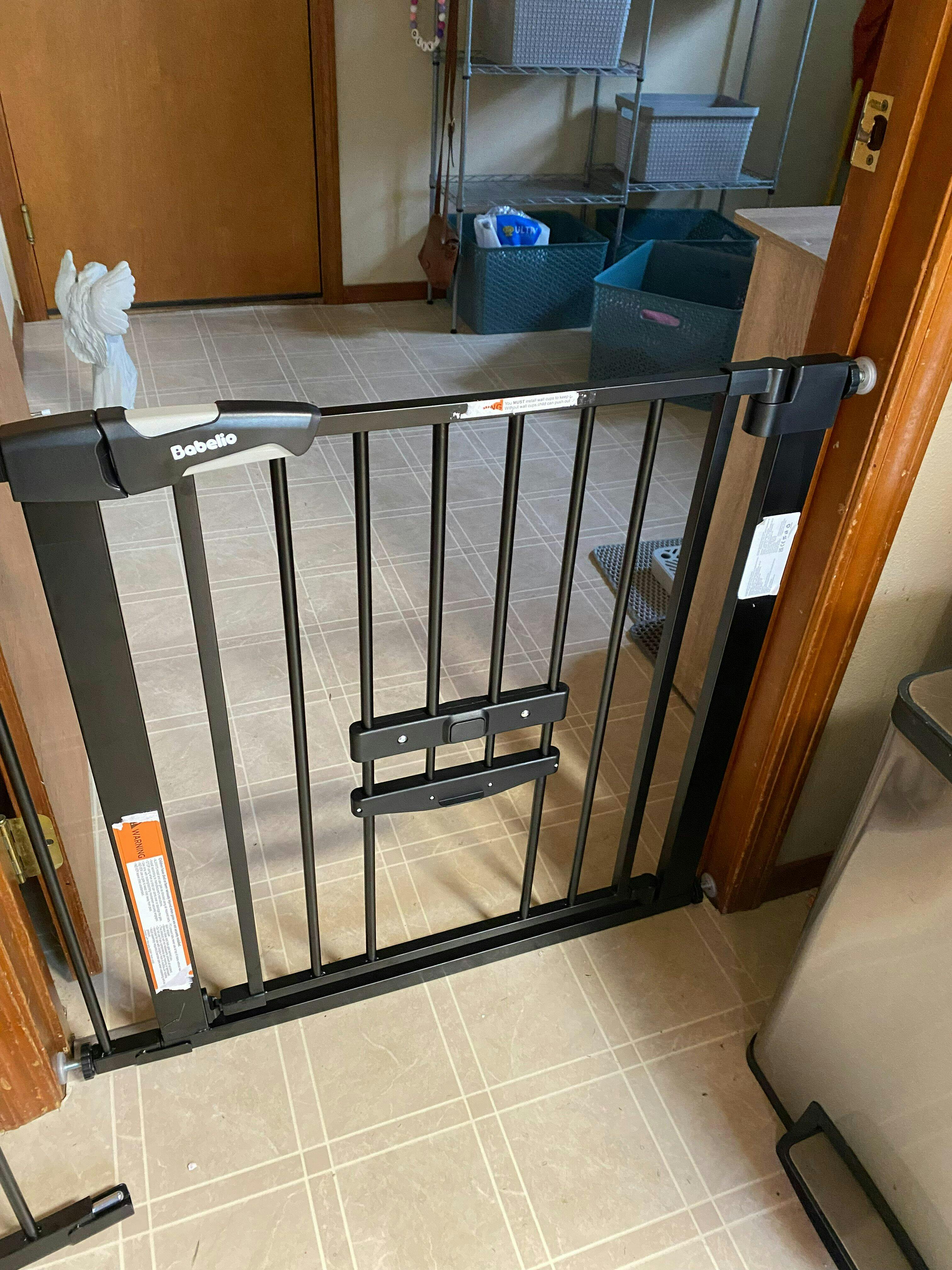 Gate auto-closes behind you and includes a stay-open feature. Swings in both directions to match your door setup for smooth everyday use.