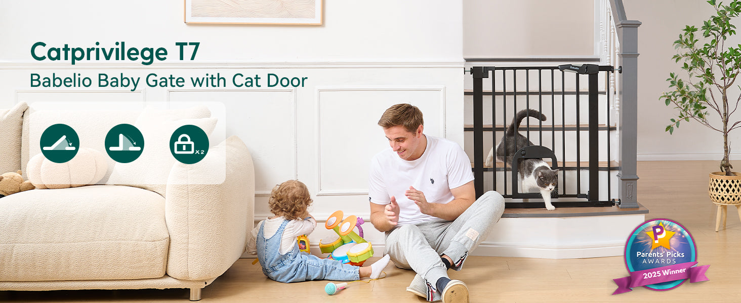 The CatPrivilege T7 is baby gate with door, designed to solve the common household struggle: allowing your feline friend to roam freely while keeping curious toddlers and energetic dogs contained. According to PetMD, giving cats their own accessible "safe zone" reduces stress and behavioral issues.