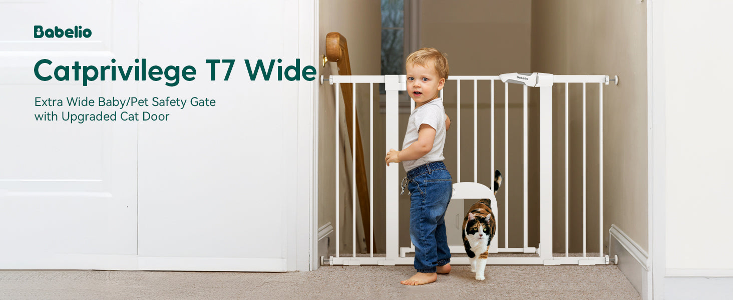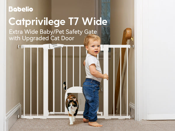 CatPrivilege T7 | Expandable Stylish Baby Gate with Cat Door