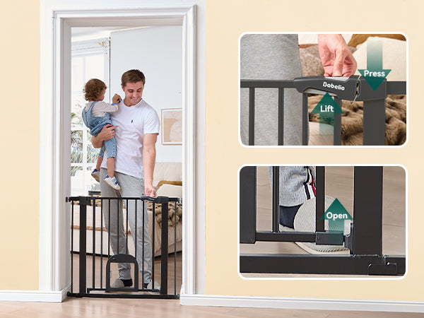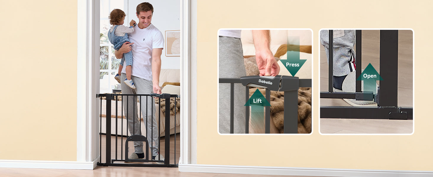 Whether you need a baby gate with door for stairs or a hallway divider, the T7 adjusts from 29 to 55 inches wide. It is the most stylish and functional way to balance the needs of every family member—furry ones included.