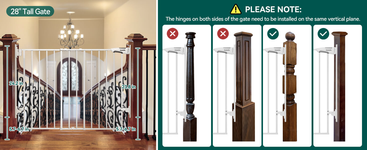 Adjustable Fit — Each gate extends from 27" to 45" wide, offering flexible installation for different areas in your home.