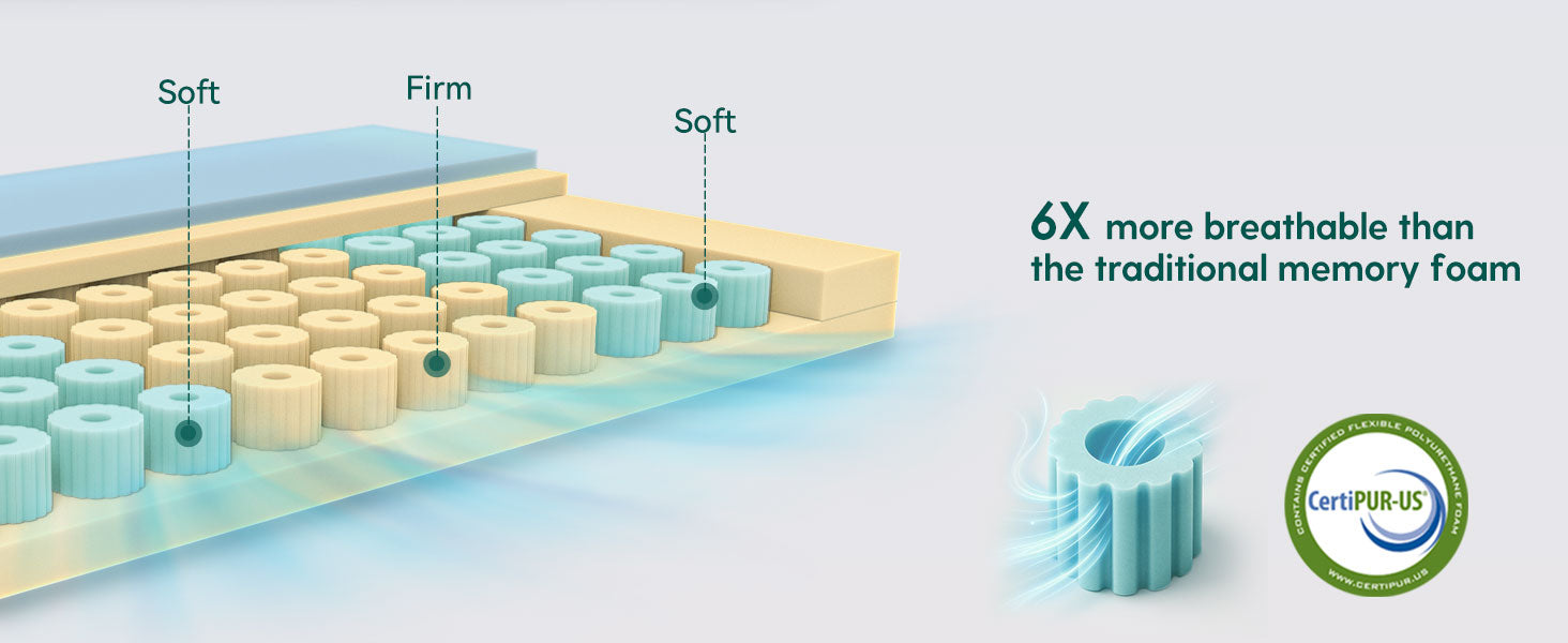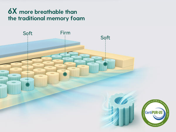【Breathable Upgrade】Crafted with multiple innovative foam spring with hole instead of the traditional single piece of foam. The enhanced ventilation keeps your baby cool and comfortable, reducing the risk of overheating