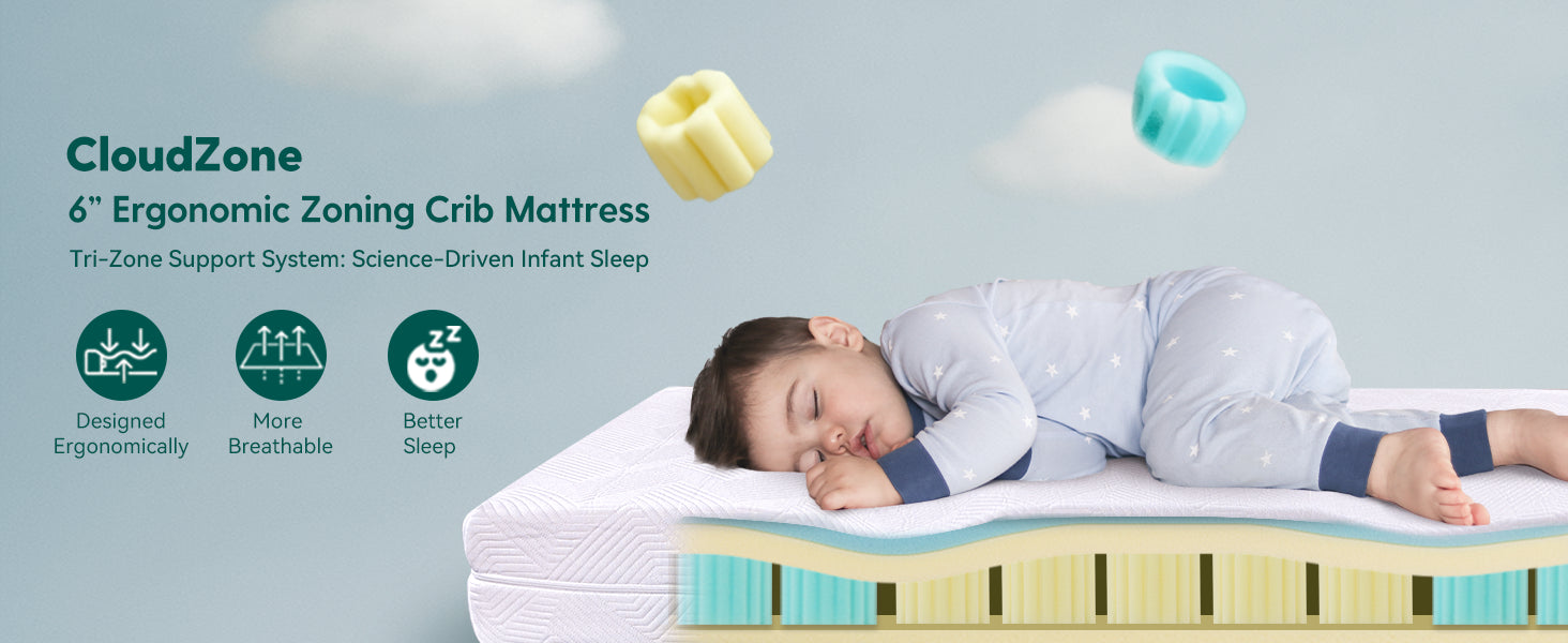 Cloud Zone | Ergonomic Zoning Crib Mattress Dual-Sided Memory Foam Waterproof