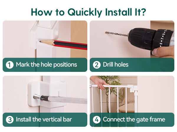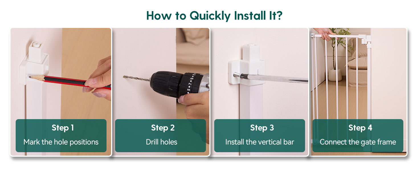 Modular Hardware System — Includes vertical bars, door frame, skirting-board pads, and screws for fast, secure installation. Easily removable when not in use—ideal for grandparents or flexible spaces.