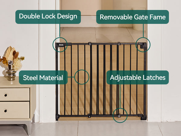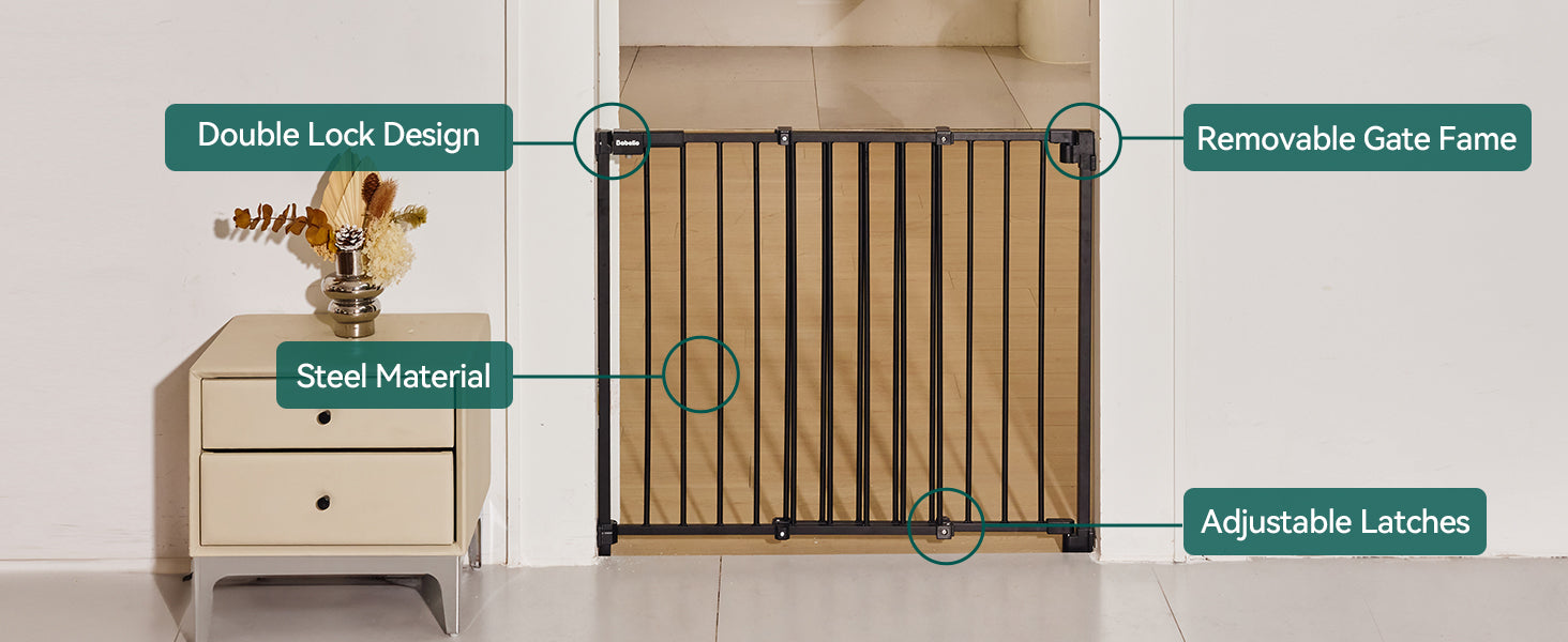 Durable & Certified Safe — Built with heavy-duty steel and a double-lock childproof system. CPSIA-certified to withstand pet impact while keeping toddlers safely contained.