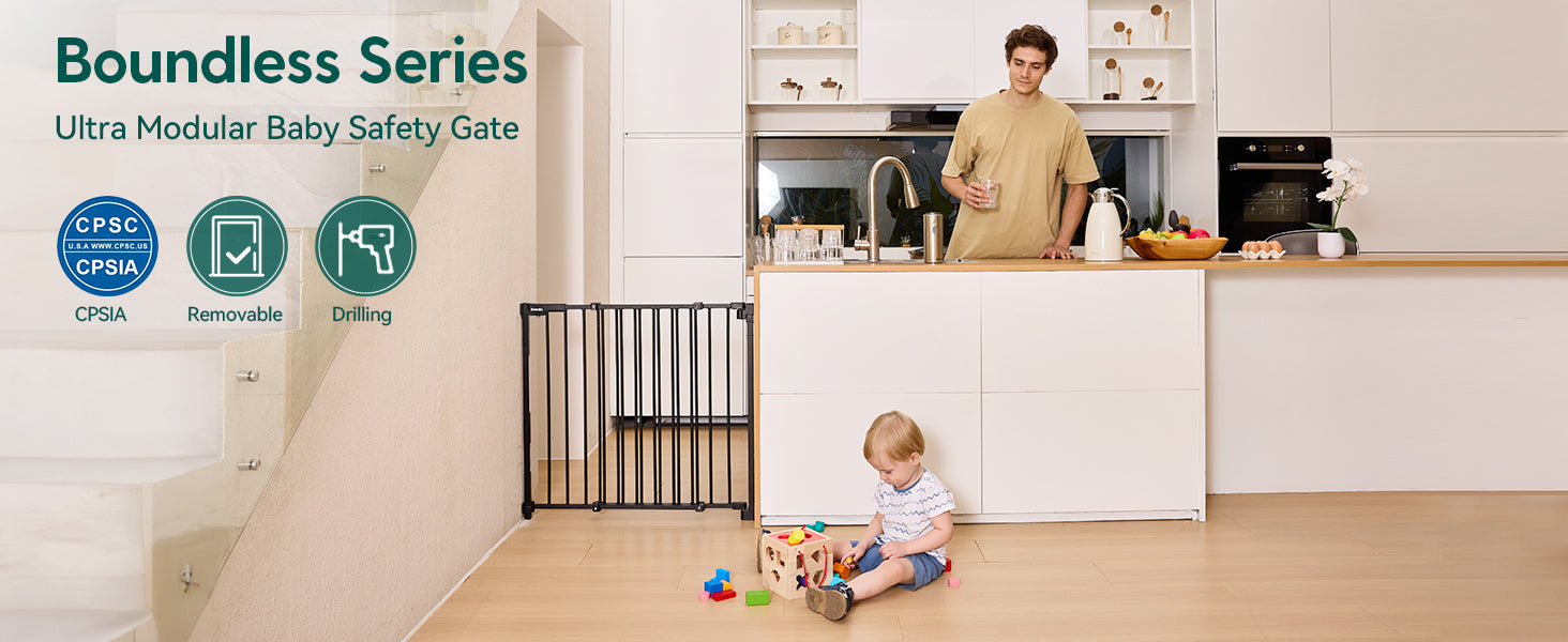 The Boundless Gate combines safety, convenience, and modern design—making it the perfect baby gate or dog gate for families who want reliable protection without compromising on comfort.