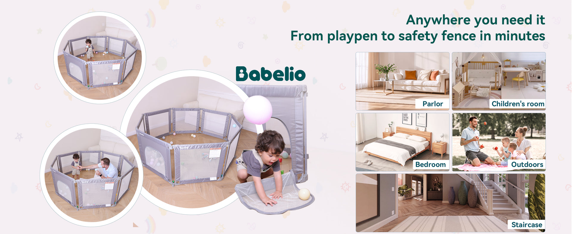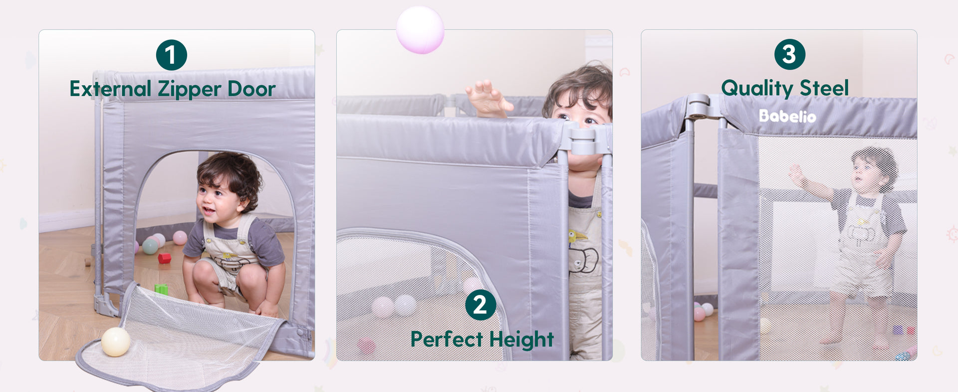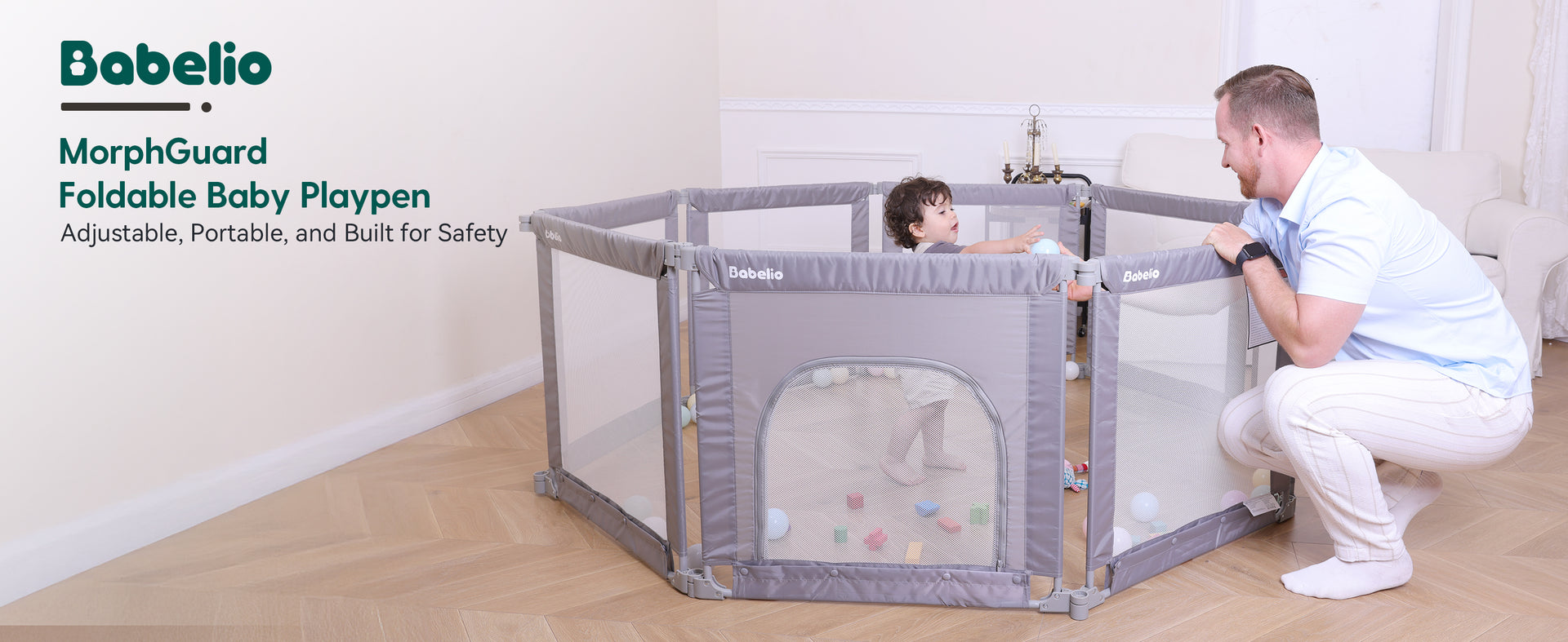 Busy parents know the struggle: keeping your baby safe while trying to manage work, house chores, or just taking a breath. The Babelio Foldable Playpen offers a secure, spacious, and flexible play space for your little one—so you can focus on what matters. With 8 adjustable panels, it fits any room layout and folds down quickly for storage or travel. Durable steel pipes and reinforced mesh walls ensure safety, even for active toddlers. More than just a playpen—it’s your child’s personal playground, and your peace-of-mind solution.