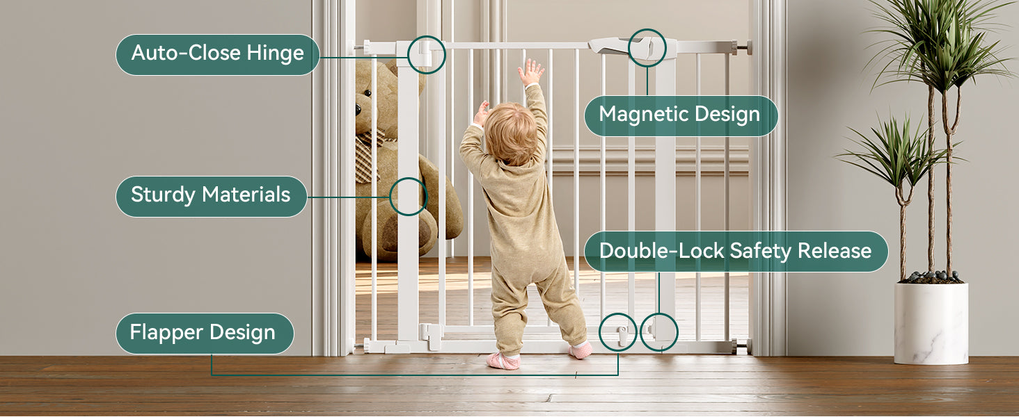Unique magnetic closure allows the gate to close automatically at any angle—no complicated latches or buckles. A safer and more convenient upgrade from traditional gates.
