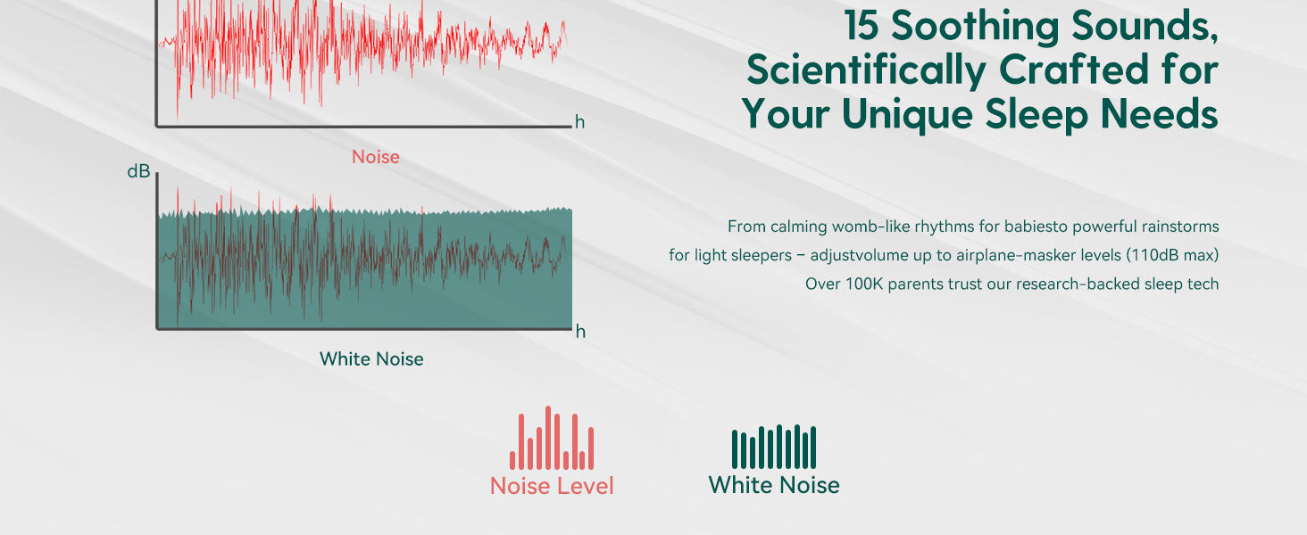 Blocks out ambient noise, soothes your baby, and ensures restful sleep for the entire family.