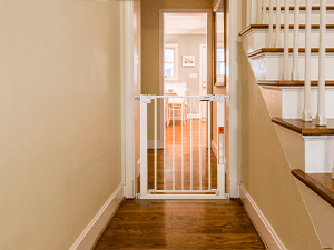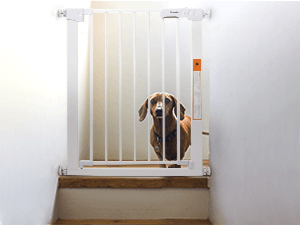 Babelio 26-28.5 Inch Narrow Easy Install Baby Gate is suitable for small and medium-sized pets and can isolate pets and keep them inside the gate.