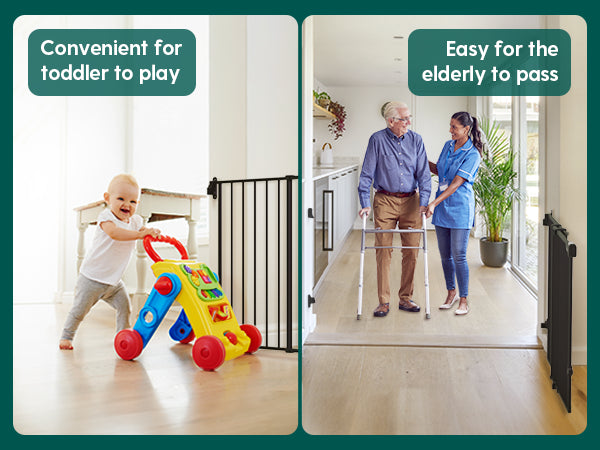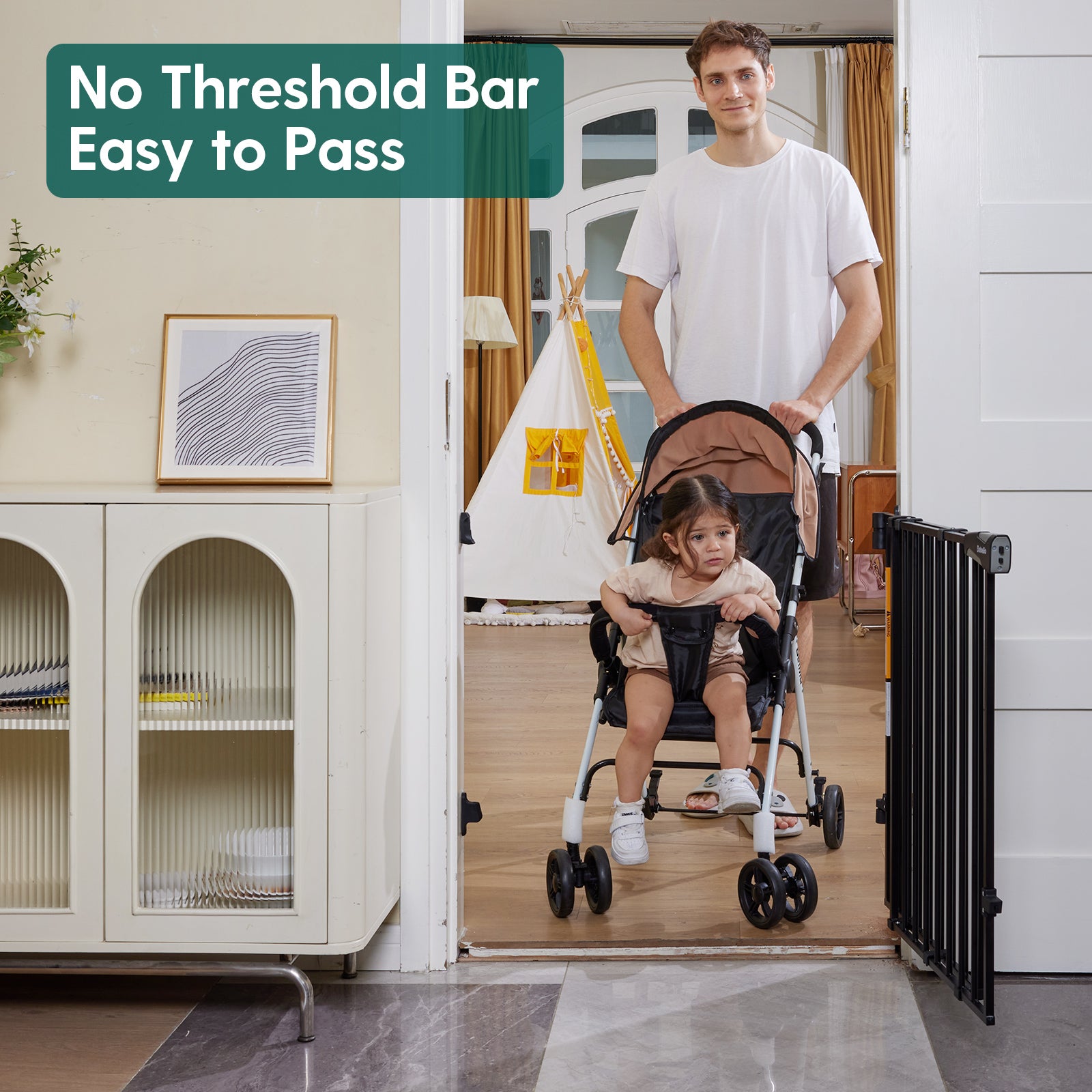 Auto-Close & Stay-Open Function — The gate closes securely behind you, while the stay-open feature makes it convenient during busy times. One-hand operation is ideal for parents on the go.