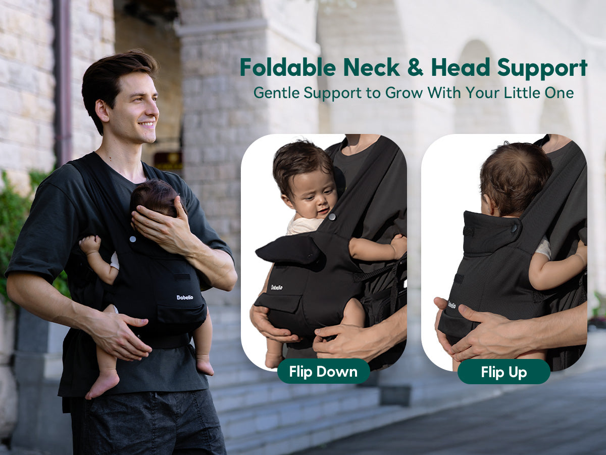 The foldable neck cushion gently supports newborns' heads. Once your little one gains head control, flip it down to give them a clear view of the world.
