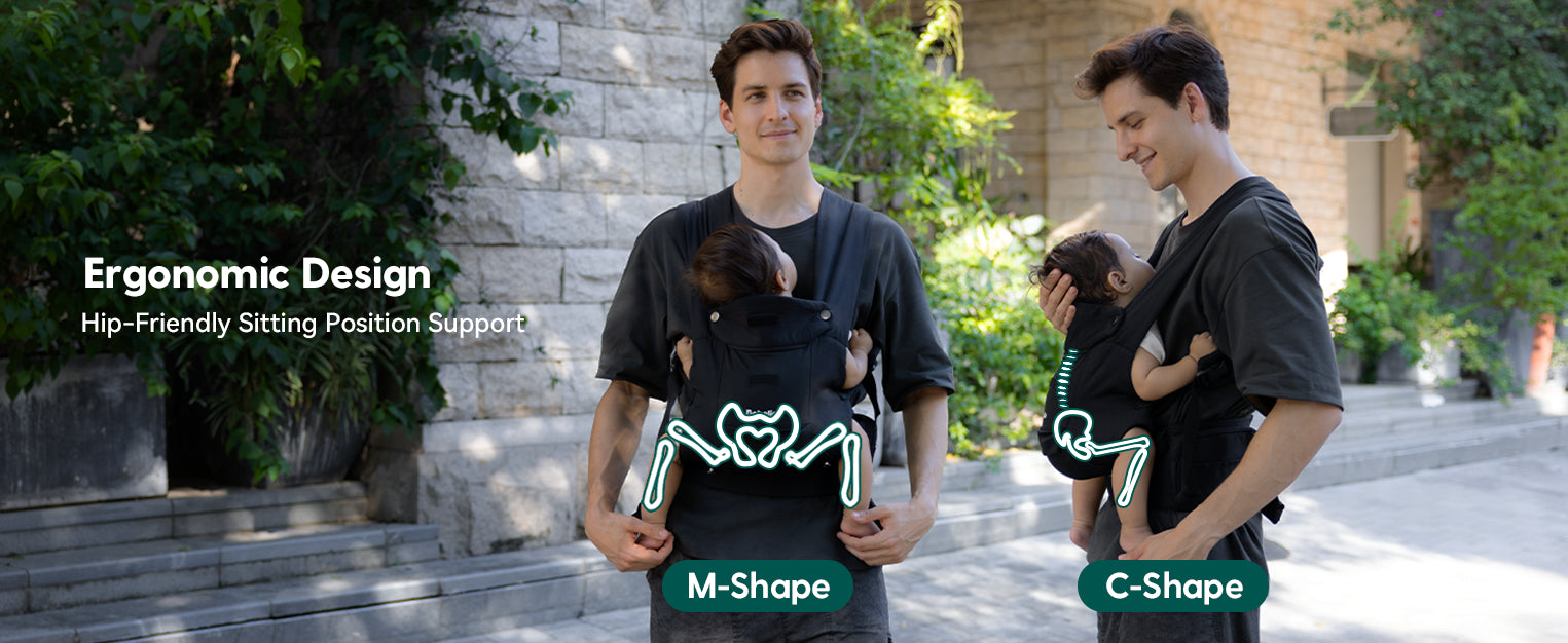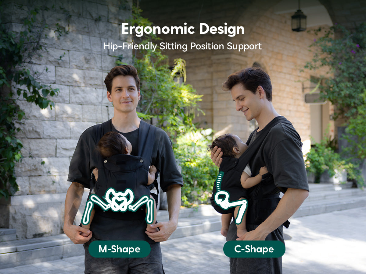 Keep your baby in the natural “M” hip position and a “C” curve for the spine, approved by pediatricians. Our carrier promotes healthy development, comfort, and closeness at every stage.