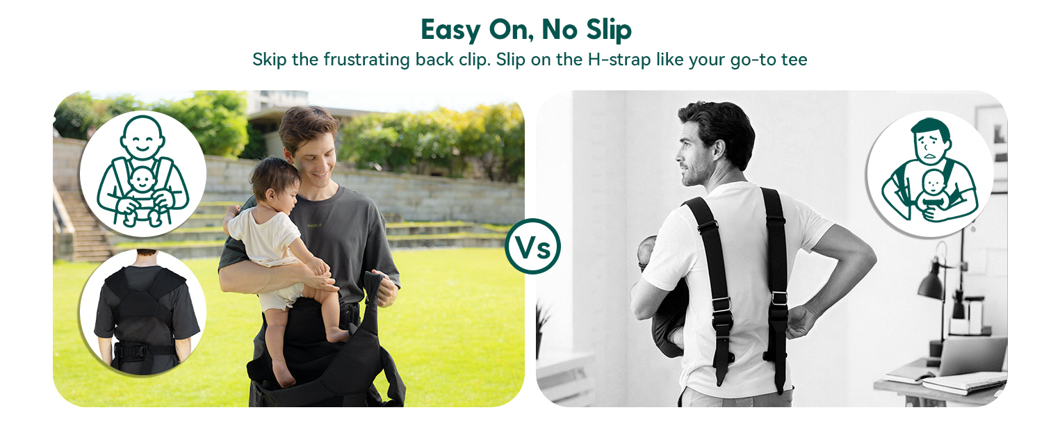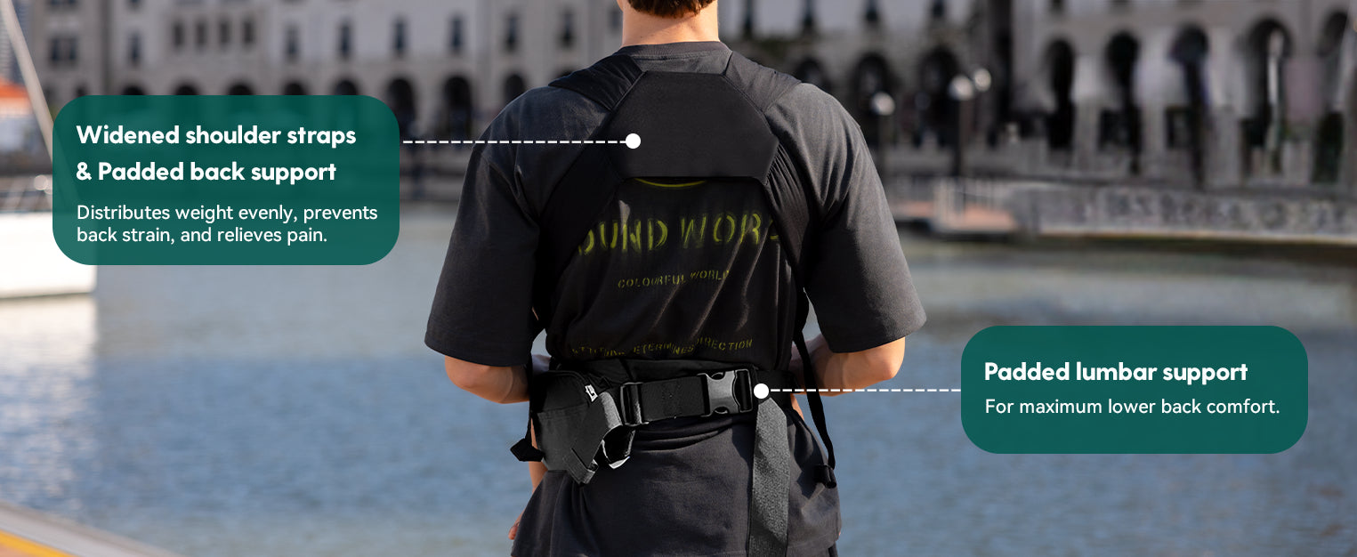 Thanks to the H-shaped shoulder straps, putting it on is as easy as slipping on a T-shirt. No complicated wrapping, no help needed. Click, adjust, and go—you’re ready in seconds.