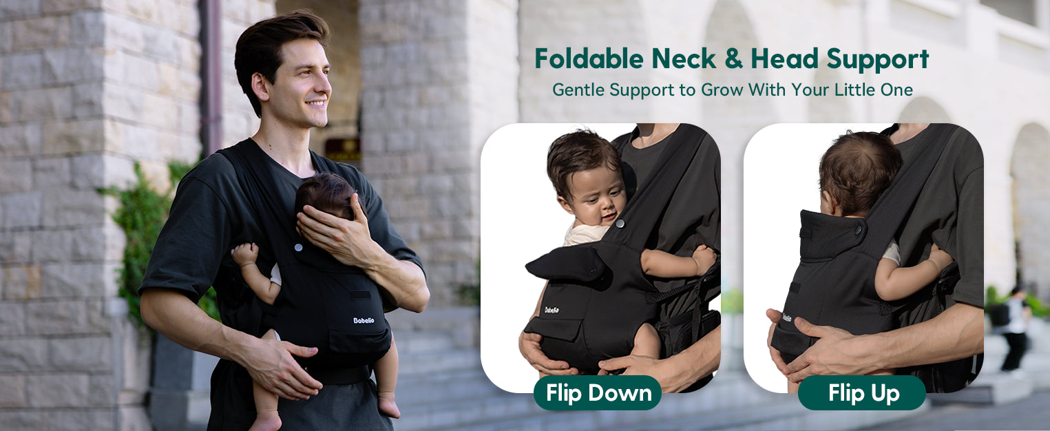 Babelio Baby Carrier Wide Shoulder & Lumbar Support | Hands-Free, Foldable Neck Cushion, Black